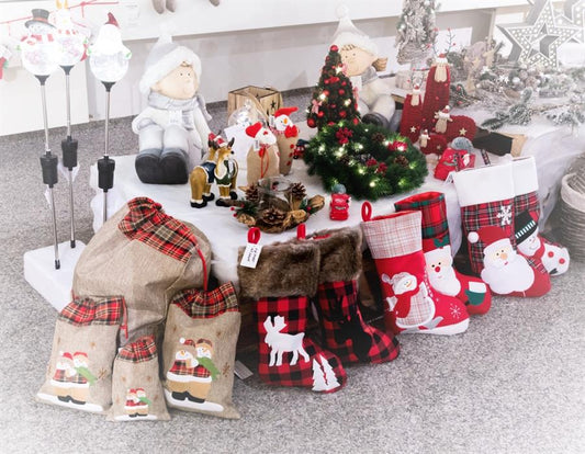 Weihnachtsstiefel Santa H:40cm B:27cm Farbe: Rot/Weiss Karo