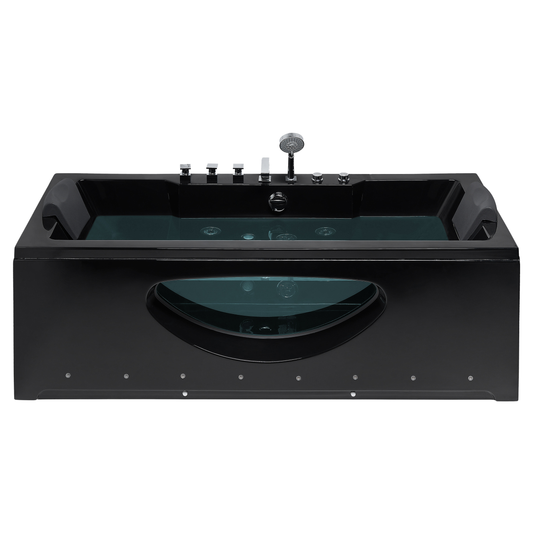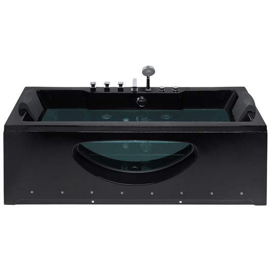 Whirlpool Badewanne schwarz rechteckig mit LED 170 x 80 cm HAWES