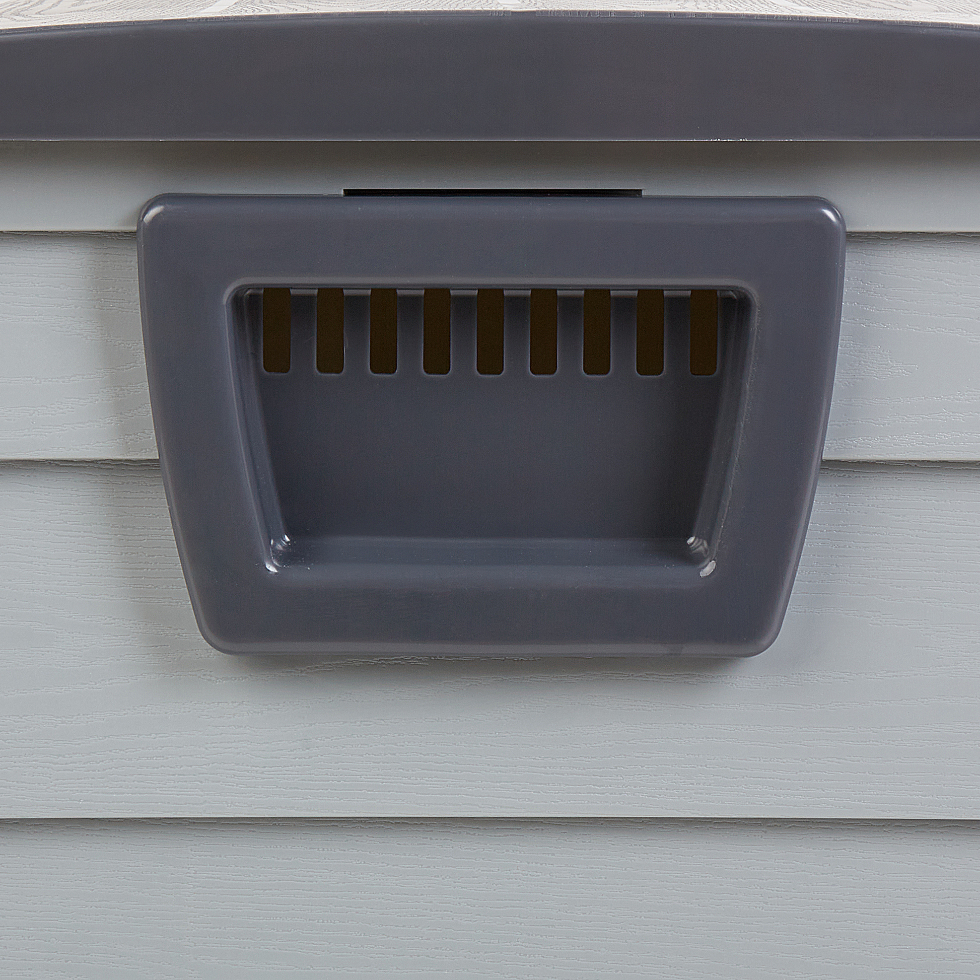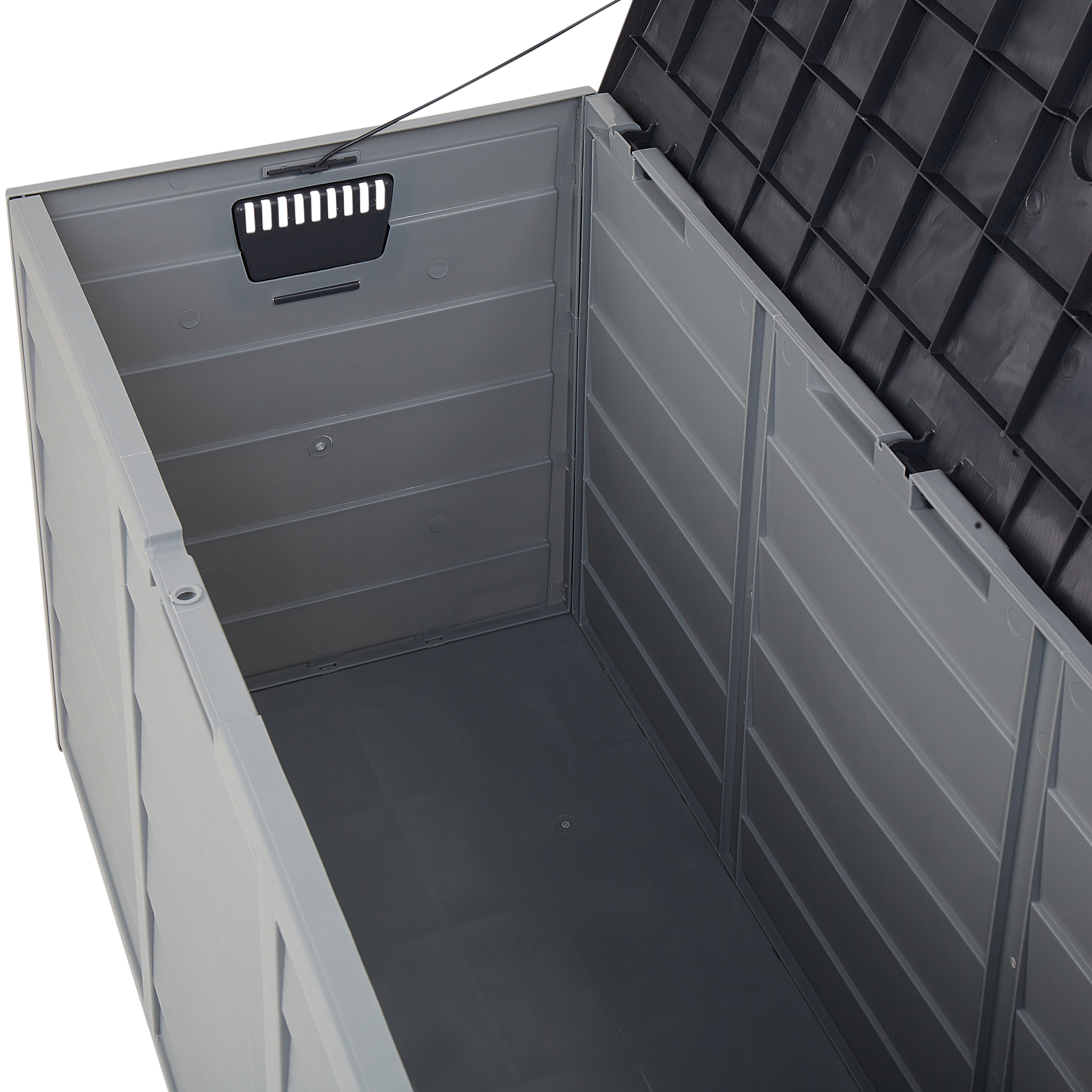 Mit dieser geräumigen Aufbewahrungsbox können Sie Ihre Gartengeräte, Outdoor-Kissen oder Regenabdeckungen, wenn Sie sie nicht benötigen, leicht verstauen. Aus synthetischem Material gefertigt, ist die Box pflegeleicht und langlebig zugleich. Dank des Deckels, der den oberen Teil des Behälters abdeckt, werden die darin aufbewahrten Gegenstände nicht schmutzig. Die Aufbewahrungsbox ist mit Griffen und Rollen ausgestattet, so dass Sie sie leicht und immer, wann Sie möchten, bewegen können. Material: Kunststoff. Gewicht: 8 Montage: Nicht montiert Gewichtskapazität: 100 Das Angebot beinhaltet: 1 x Aufbewahrungsbox Höhe: 53 Breite: 112 Tiefe: 50 Art: Aufbewahrungsbox Allgemeine Farbe: Beige Hauptmaterial: Kunststoff