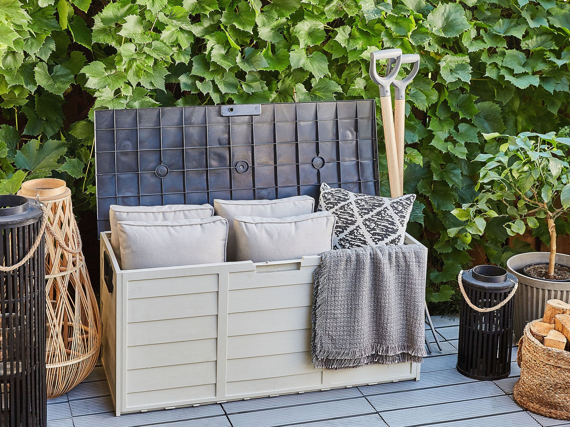 Mit dieser geräumigen Aufbewahrungsbox können Sie Ihre Gartengeräte, Outdoor-Kissen oder Regenabdeckungen, wenn Sie sie nicht benötigen, leicht verstauen. Aus langlebigem synthetischem Material gefertigt, benötigt die Box keine tägliche Pflege, um viele Jahre lang zu halten. Dank des Deckels, der den oberen Teil des Behälters abdeckt, werden die darin aufbewahrten Gegenstände nicht schmutzig. Die Aufbewahrungsbox ist mit Griffen und Rollen ausgestattet, so dass Sie sie leicht und immer, wann Sie möchten, bewegen können. Material: Kunststoff. Gewicht: 8 Montage: Nicht montiert Gewichtskapazität: 100 Das Angebot beinhaltet: 1 x Aufbewahrungsbox Höhe: 53 Breite: 112 Tiefe: 50 Art: Aufbewahrungsbox Allgemeine Farbe: Grau Hauptmaterial: Kunststoff