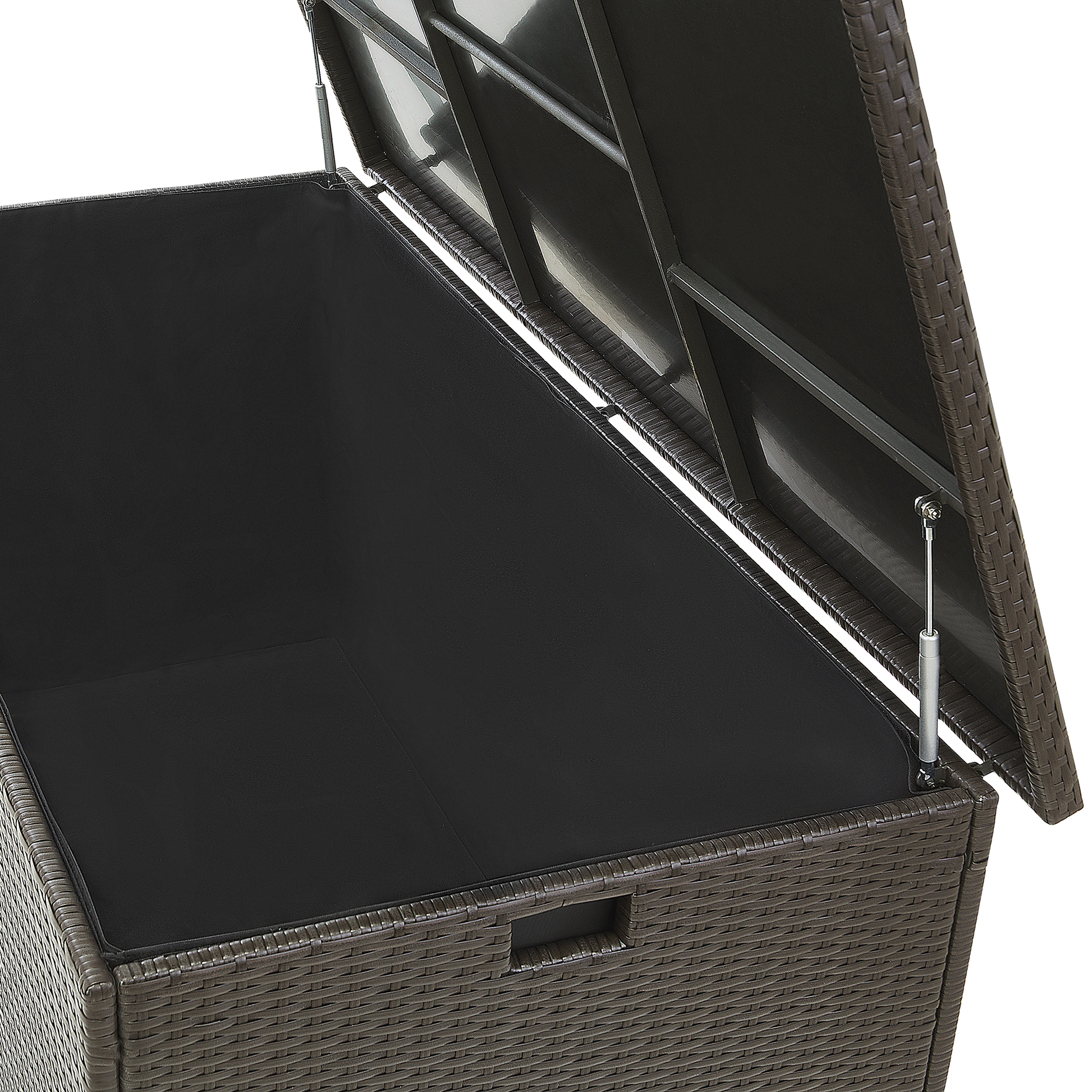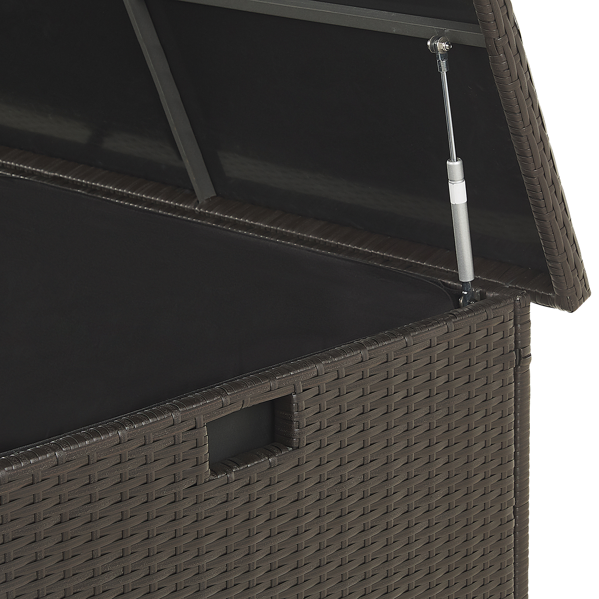 Unsere Kissenbox bietet viel Stauraum und schützt Ihre Kissen, Decken und Polster vor Regen und Sonne. Dank der zwei praktischen Griffe an den Seiten ist die Gartentruhe leicht zu transportieren. Der aus Polyrattan gefertigte Deckel lässt sich mittels zwei Gasdruckfedern spielend leicht öffnen und schliessen. Eine schwarze Innenhülle verhindert das Eindringen von Schmutz und Insekten. Die einteilige Innenhülle wird mit einem starken Klettverschluss befestigt und hat somit optimalen Halt und kann bei Bedarf ausgewechselt oder gewaschen werden. Bitte beachten Sie, dass bei starken und andauernden Regenfällen die Box bedeckt werden sollte, damit sich das Wasser auf dem Deckel nicht ansammelt und ins Innere der Truhe eindringt. Material: PE Rattan. Zusätzliches Material: Stahl, Polyester, Kunststoff. Gewicht: 28 Montage: Nicht montiert Gewichtskapazität: 15 Das Angebot beinhaltet: 1 x Kissenbox Höhe: 80 zusätzliche Information: Damit das folgende Produkt jahrelang seine Schönheit beibehält, stellen wir Ihnen ein ausführliches Pflegehandbuch zur Verfügung. Die Pflegeanleitung und Tipps zur richtigen Wartung Ihres neuen Produkts finden Sie finden Sie unten im Abschnitt „Verpackung und Montage“. Breite: 155 Tiefe: 75 Art: Aufbewahrungsbox Stil: Boho Allgemeine Farbe: Braun Schatten: Dunkelbraun Hauptmaterial: PE Rattan