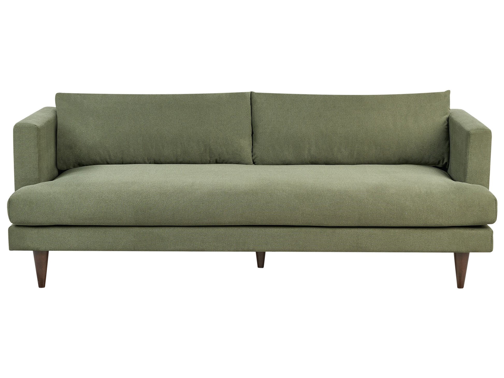 Ein Sofa, das Gemütlichkeit und einen modernen, vielseitigen Look verkörpert. Die breite Sitzfläche, schmalen Armlehnen und besonders dicken Polster des Dreisitzers sorgen für einen Komfort, den Sie an jedem Fernsehabend bestimmt geniessen werden. Dabei zeichnet sich die Couch nicht nur mit einem angenehm weichen Stoffbezug, sondern auch mit einer robusten Konstruktion und dicken Schaumstoff-Füllung aus. Die abnehmbaren Bezüge der Rücken- und Sitzkissen garantieren Pflegeleichtigkeit, während die hohen Holzbeine eine angemessene Stabilität bieten. Material: Polyester. Zusätzliches Material: Sperrholz, Gummibaumholz. Material Zusammensetzung: 100% Polyester Gewicht: 52 Kapazität: 3 Personen Montage: Nicht montiert Holzart: Hevea brasiliensis Holzursprung: Malaysia Beine Höhe: 18 Polsterstärke: 28 Sitzhöhe: 48 Das Angebot beinhaltet: 1 x Dreisitzer Sitzfläche: 190x80 Höhe: 72 Breite: 214 Tiefe: 93 Art: 3 Sitzer Sofa Stil: Minimalistisch Allgemeine Farbe: Grün Muster: Ohne Muster Hauptmaterial: Polyester Füllmaterial: Schaumstoff, Taschenfedern Arm Stil: Gerade
