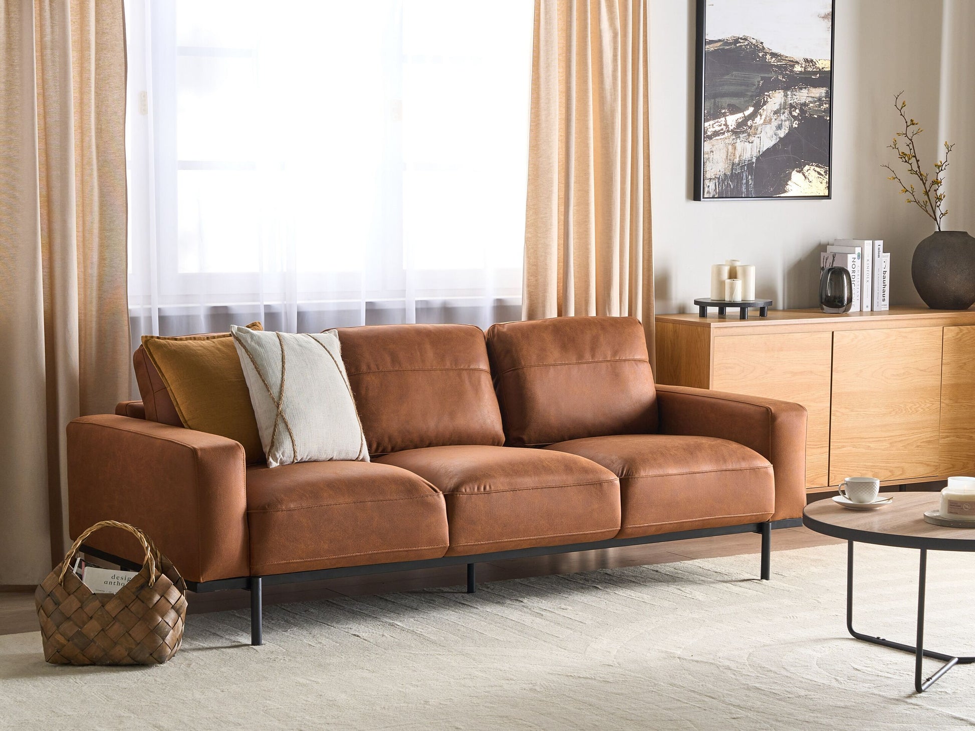 3-Sitzer Sofa Stoff braun Lederoptik SOVIK