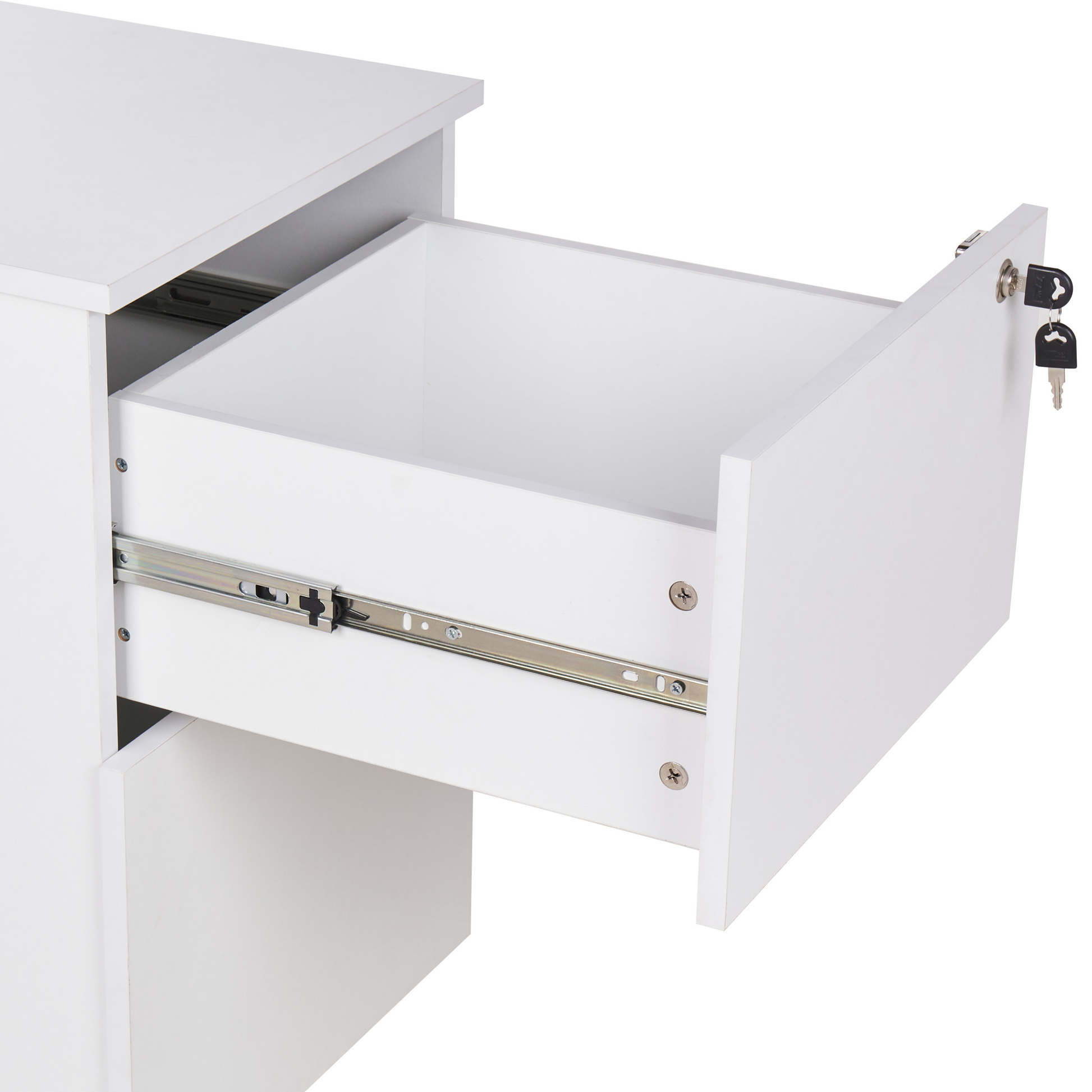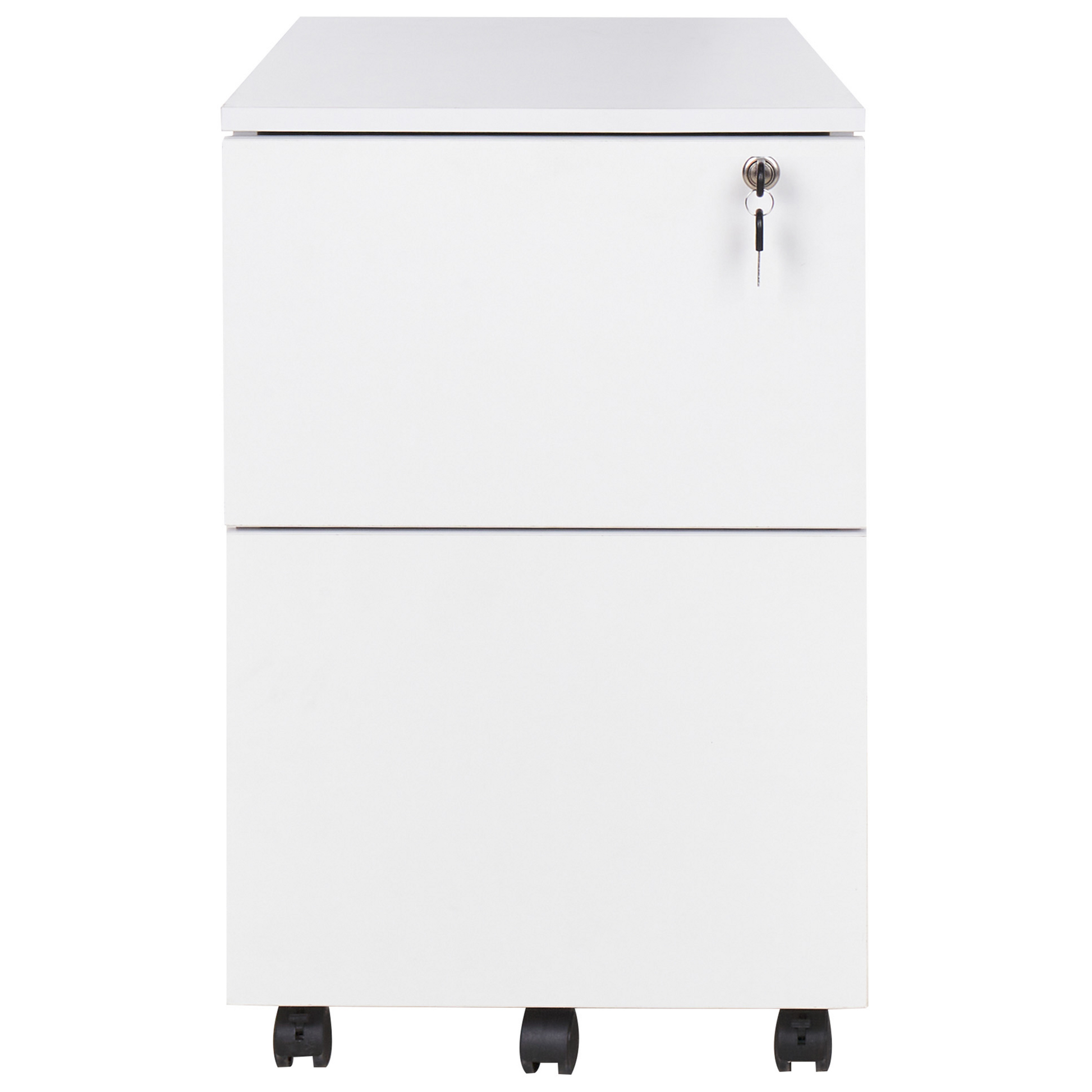 Beschreibung: Mit diesem praktischen Büroschrank setzen Sie auf funktionale Eleganz. In schlichtem Weiss gehalten, bringt dieser Schrank einen Hauch vom Scandi-Style in Ihren Arbeitsbereich. Die beiden Schubladen mit Schlüsselverriegelung verstauen Ihre Gegenstände sicher, während die Rollen es ermöglichen, den Aktenschrank leicht an jeden beliebigen Ort zu verschieben. Mit diesem Möbelstück wird Ihr Büro zum Inbegriff von Stil und Komfort. Material: Faserplatte. Zusätzliches Material: Metall, Kunststoff. Gewicht: 16 Montage: Nicht montiert Beine Höhe: 5 Das Angebot beinhaltet: 1 x Büroschrank Höhe: 62 Breite: 40 Tiefe: 40 Art: Büroschrank Stil: Industriell Allgemeine Farbe: Weiss Hauptmaterial: Faserplatte