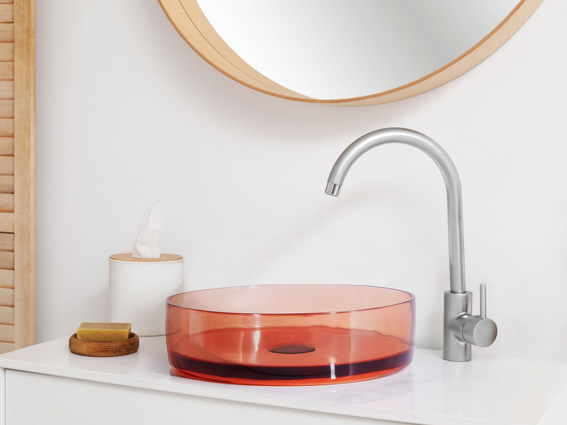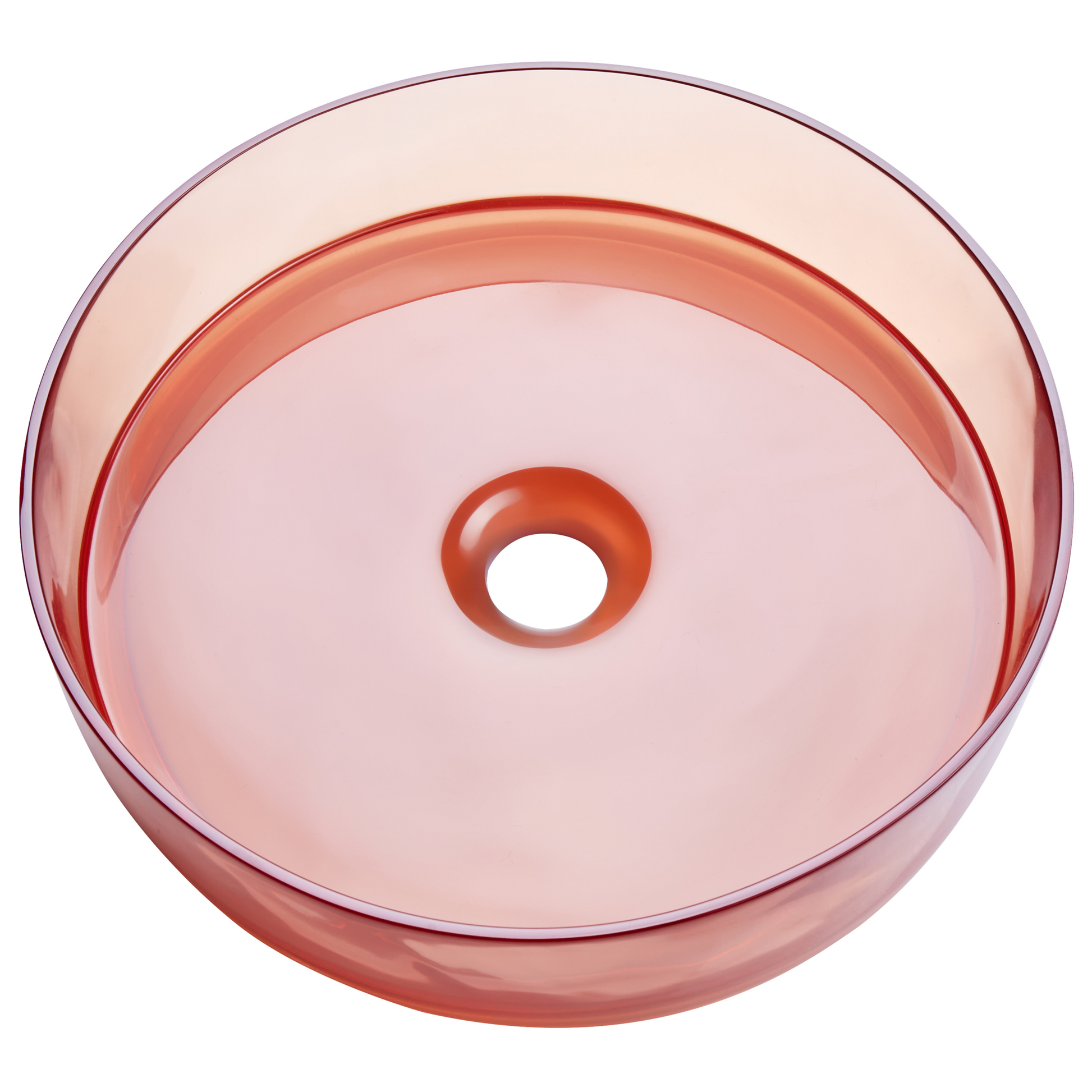Dieses elegante, gefärbte Aufsatzwaschbecken ermöglicht es Ihnen, Ihre Waschecke individuell zu gestalten und dabei einen echten Hingucker im Badezimmer zu gewinnen. Das Waschbecken ist aus hochwertigem Mineralwerkstoff gefertigt, der nicht nur durch seinen modernen Look besticht, sondern auch aussergewöhnlich langlebig ist. Der mitgelieferte Klick-Klack-Stöpsel stellt sowohl eine komfortable als auch ästhetische Lösung dar, welche Ihnen das Schliessen und Öffnen des Wasserabflusses ermöglicht. Das Modell ist die perfekte Wahl für alle, die Ihre Wohlfühloase auf einem frei stehenden Unterbau montieren und selbst entscheiden möchten, ob Sie die Waschschale auf einer Kommode, einem Schrank oder Tisch platzieren. Material: Mineralwerkstoff (kein Glas). Zusätzliches Material: Kupfer. Gewicht: 5 Montage: Installation benötigt Das Angebot beinhaltet: 1 x Waschbecken, 1 x Click-Clack-Abtropfer Höhe: 10 zusätzliche Information: Alle Anschlüsse müssen entsprechend dieser Bedienungsanleitung und den in Ihrem Land gültigen Normen durchgeführt werden. Gestalten: Rund Breite: 36 Tiefe: 36 Art: Waschbecken Stil: Modern Allgemeine Farbe: Transparent Schatten: Hellrot Hauptmaterial: Mineralwerkstoff (kein Glas)