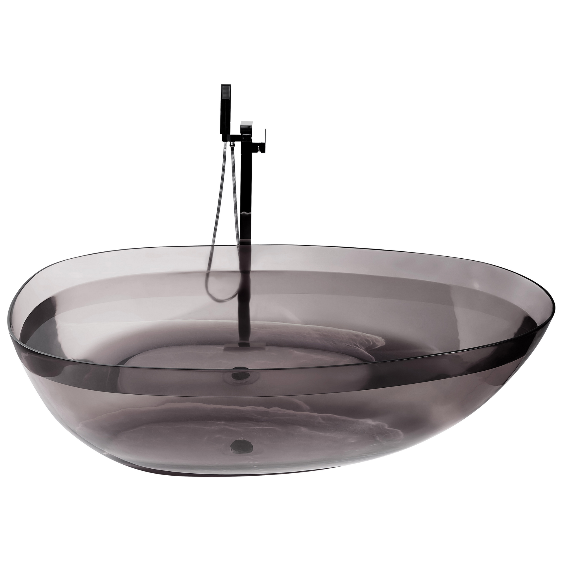Verwöhnen Sie sich mit dieser freistehenden Badewanne und bringen Sie Stil und Raffinesse in Ihr Badezimmer. Aus hochwertigem Mineralwerkstoff gefertigt, ist sie robust, langlebig und pflegeleicht im täglichen Gebrauch. Dieses transparente Meisterwerk mit seiner edlen, seidenmatten Oberfläche strahlt Eleganz aus und passt perfekt zu modernen und industriellen Einrichtungen. Material: Mineralwerkstoff (kein Glas). Zusätzliches Material: Kupfer. Gewicht: 68 Kapazität: 1 Person Montage: Installation benötigt Gewichtskapazität: 400 Das Angebot beinhaltet: 1 x Badewanne, Inkl. Abflussrohr, Nicht im Lieferumfang enthalten: Armatur Höhe: 53 zusätzliche Information: Alle Anschlüsse müssen entsprechend dieser Bedienungsanleitung und den in Ihrem Land gültigen Normen durchgeführt werden., Der Anschluss an das Stromnetz darf ausschliesslich von autorisiertem und qualifiziertem Personal durchgeführt werden., Um Transportschäden zu vermeiden, sind die Whirlpools nicht zu 100%, sondern nur zu 85% vormontiert! Das Abdichten und Kontrollieren der Leitungen, Sichtfenster und Düsen durch einen Sanitär liegt in der Verantwortung des Kunden., Bitte beachten Sie, dass die Seriennummer des Modells sowohl auf dem Wannenrahmen als auch auf der Verpackung aufgeführt ist. Die Seriennummer sollte aufbewahrt werden, da sie im Falle einer Nachlieferung von Ersatzteilen oder bei Garantieansprüchen erforderlich ist., Geeignete Schläuche sollten von einem Fachmann vor Ort erworben und angeschlossen werden. Es dürfen auf keinen Fall die vom Verkäufer gelieferten Anschlussschläuche verwendet werden., Alle Schläuche müssen von einem Fachmann vor Inbetriebnahme und danach in regelmässigen Abständen überprüft und abgedichtet werden. Die Schläuche können sich während des Transports oder mit der Zeit lösen., Sollte ein Defekt vorliegen, ist der Kunde für den Aus- und Wiedereinbau der defekten Teile verantwortlich. Gestalten: Oval Breite: 169 Länge: 78 Art: Freistehende Badwanne Stil: Modern Allgemeine Farbe: Schwarz Hauptmaterial: Mineralwerkstoff (kein Glas)