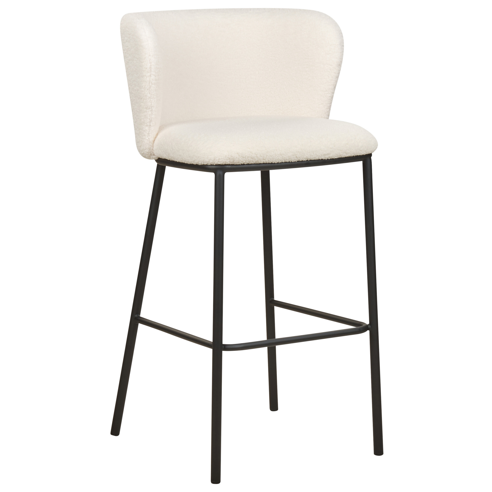 Geben Sie Ihrem Esszimmer mit diesen stilvollen Polsterstühlen den letzten Schliff. Die Stühle sind aus strapazierfähigem, cremeweissem Bouclé-Stoff und schwarzen, pulverbeschichteten Metallbeinen gefertigt. Dank diesen hochwertigen Materialien werden sie viele Jahre halten und Ihre Einrichtung auf eine völlig neue Ebene bringen. Beide Stühle haben leicht geschwungene, niedrige Rückenlehnen und bieten dank ihres Designs einen hohen Sitzkomfort. Sie können sogar platzsparend unter den Tresen geschoben werden, wenn sie nicht gebraucht werden. Material: Bouclé. Zusätzliches Material: Eisen, Sperrholz. Material Zusammensetzung: 100% Polyester Gewicht: 7 Montage: Beine / Füsse nicht montiert Gewichtskapazität: 150 Polsterstärke: 6 Sitzhöhe: 73 Das Angebot beinhaltet: 2 x Barstuhl Sitzfläche: 47x42 Höhe: 98 zusätzliche Information: Um sicherzustellen, dass die Konstruktion stabil und die Nutzungssicherheit gewährleistet ist, sollte man 2 Wochen nach dem Zusammenbau überprüfen, ob die Ware auch korrekt montiert wurde. Ausserdem ist alle 3 Monate zu prüfen, ob die Schrauben richtig festgezogen sind. Breite: 52 Tiefe: 46 Art: Set mit 2 Barstühlen Stil: Modern Allgemeine Farbe: Weiss Schatten: Cremeweiss Hauptmaterial: Bouclé