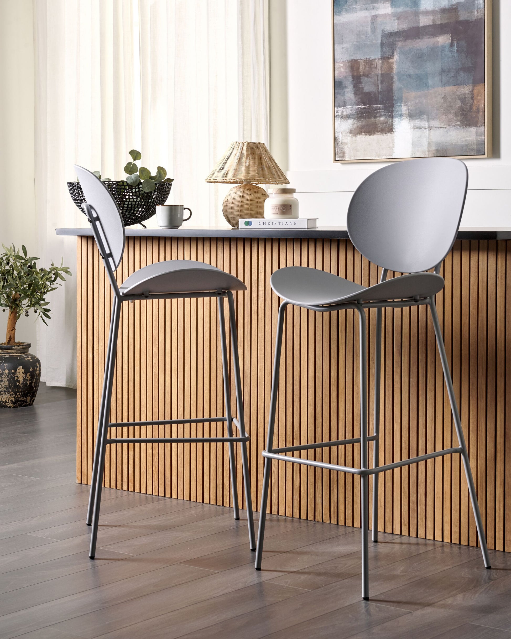Beschreibung: Dieses Set verwandelt Ihr Esszimmer oder Ihre Küche in einen funktionalen und zugleich stilvollen Ort. Dank ihrer neutralen Farbgebung und ihres vielseitigen Designs sind diese Kunststoffstühle die perfekte Ergänzung für jeden skandinavischen, industriellen und jeden anderen Einrichtungsstil. Die Barstühle sind mit Metallbeinen und praktischen Fussstützen versehen, so sind sie pflegeleicht, stabil und bequem. Sie machen sich hervorragend beim Küchentisch oder -tresen und erstellen bestimmt einen Essbereich, der sich sehen lässt. Material: Polypropylen. Zusätzliches Material: Eisen. Gewicht: 5 Montage: Nicht montiert Gewichtskapazität: 150 Sitzhöhe: 75 Das Angebot beinhaltet: 2 x Barstuhl Sitzfläche: 52x41 Höhe: 116 zusätzliche Information: Um sicherzustellen, dass die Konstruktion stabil und die Nutzungssicherheit gewährleistet ist, sollte man 2 Wochen nach dem Zusammenbau überprüfen, ob die Ware auch korrekt montiert wurde. Ausserdem ist alle 3 Monate zu prüfen, ob die Schrauben richtig festgezogen sind. Breite: 52 Tiefe: 48 Art: Set mit 2 Barstühlen Stil: Skandinavisch Allgemeine Farbe: Grau Schatten: Hellgrau Hauptmaterial: Polypropylen