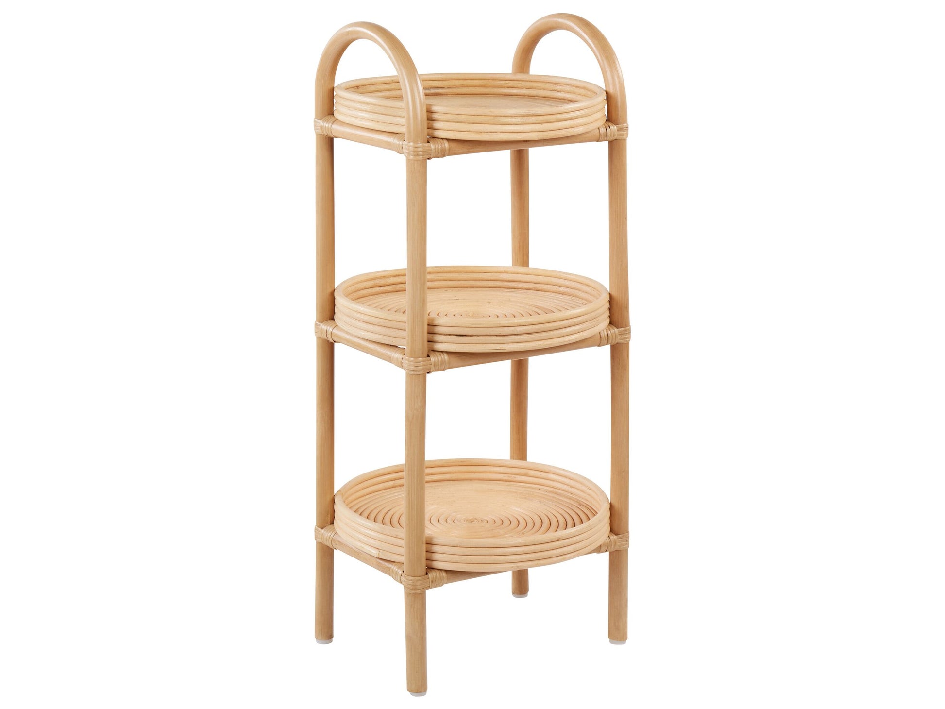 Dieser elegante Ablagetisch mit drei Ebenen verleiht jedem Innen- oder Aussenbereich einen Hauch von natürlichem Charme. Er ist aus natürlichem Rattan gefertigt und bietet viel Stauraum für das Notwendige, während sein robustes und dennoch leichtes Design für einfache Mobilität sorgt. Er ist ideal für die Präsentation von Dekorationsartikeln, Pflanzen oder Alltagsgegenständen und verbindet Funktionalität mit Stil. Material: Rattan. Gewicht: 2 Montage: Benötigt keine Montage Das Angebot beinhaltet: 1 x Beistelltisch Höhe: 78 zusätzliche Information: Bitte beachten Sie, dass das Produkt wetterempfindlich ist und bei Nichtgebrauch im Inneren aufbewahrt werden sollte., Es ist nicht empfehlenswert, die Möbel bei schlechterem Wetter nur unter einer Abdeckung draussen stehen zu lassen. In der Nebensaison empfehlen wir, die Möbel drinnen an einem trockenen und kühlen Ort aufzubewahren., Da jedes Produkt handgefertigt wird, kann es zu kleineren Abweichungen in der Farbe und der äusseren Struktur kommen. Diese Abweichungen stellen keinen Qualitätsmangel dar, sondern sind eine warentypische Eigenschaft., Damit das folgende Produkt jahrelang seine Schönheit beibehält, stellen wir Ihnen ein ausführliches Pflegehandbuch zur Verfügung. Die Pflegeanleitung und Tipps zur richtigen Wartung Ihres neuen Produkts finden Sie finden Sie unten im Abschnitt „Verpackung und Montage“. Gestalten: Rund Breite: 32 Länge: 32 Art: Beistelltisch Stil: Boho Allgemeine Farbe: Naturfarben Hauptmaterial: Rattan