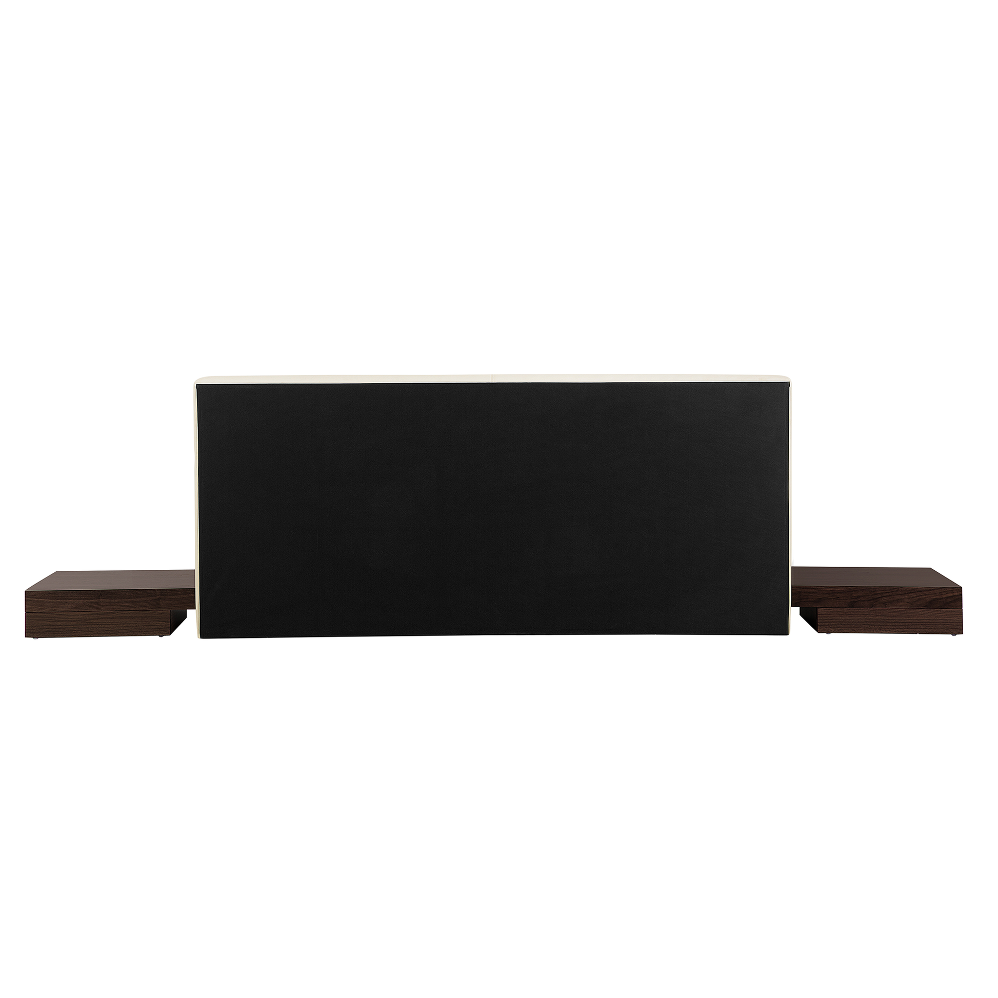Grosszügig, komfortabel und mit klaren Linien bringt dieses herrlich komfortable und elegante Futonbett im japanischen Stil Ruhe und Ausgeglichenheit in Ihr Schlafzimmer. Der natürliche, dunkle Holzfarbton harmonisiert ausgezeichnet mit dem weissen Kunstleder der beiden Kopfteile und den zwei, flachen Nachttischen an den Seiten. Der stabile Lattenrost sorgt zusätzlich für eine perfekte Klimatisierung. Material: MDF-Platte. Zusätzliches Material: Kunstleder. Material Zusammensetzung: 100% Kunstleder Gewicht: 106 Montage: Nicht montiert Holzart: Hevea brasiliensis Holzursprung: Malaysia Gewichtskapazität: 350 Beine Höhe: 8 Schlafende Oberfläche: 180x200 Das Angebot beinhaltet: 1 x einfacher Lattenrost (Anzahl der Latten: 14), 1 x Bettrahmen, 2 x Nachttische, Nicht im Lieferumfang enthalten: Matratze, Bettwäsche und Kissen Höhe: 86 zusätzliche Information: Die auf den Fotos dargestellte Matratze ist 20 cm hoch, daher ist eine ähnlich hohe Matratze empfehlenswert., Holz ist ein Naturprodukt. Farb- und Strukturunterschiede, Narben, Falten und sonstige Naturmerkmale sind Echtheitsbeweise und keine zur Reklamation berechtigende Fehler. Breite: 328 Länge: 229 Art: Bett mit Lattenrost Stil: Skandinavisch Allgemeine Farbe: Dunkler Holzfarbton Hauptmaterial: MDF-Platte Stoff gepolstert zurück: Nein