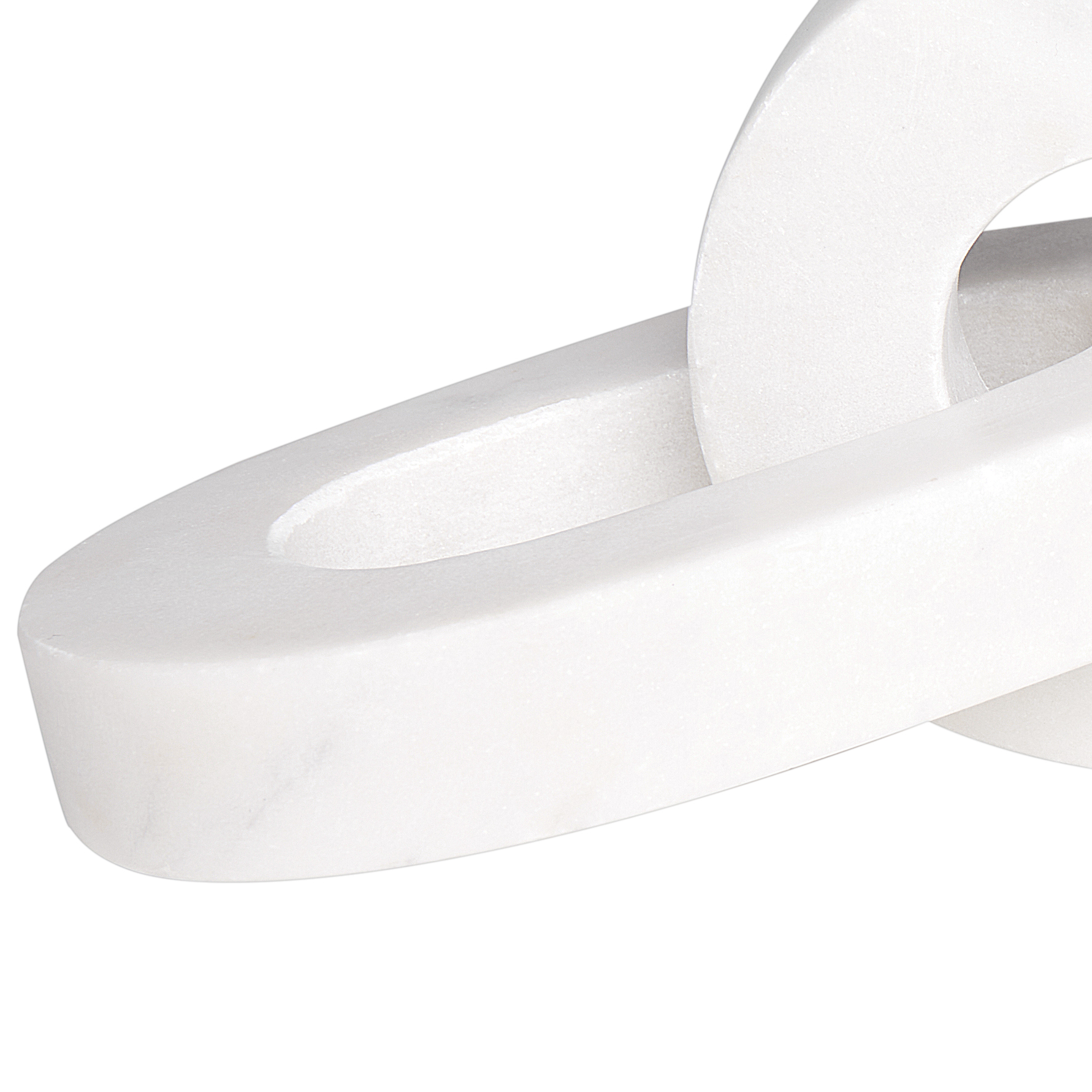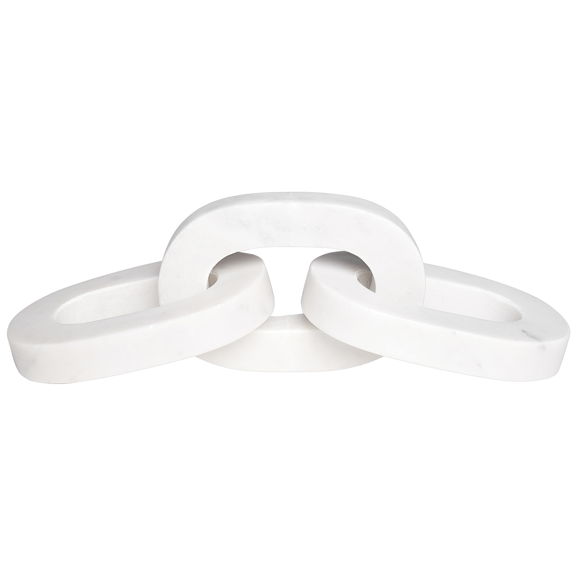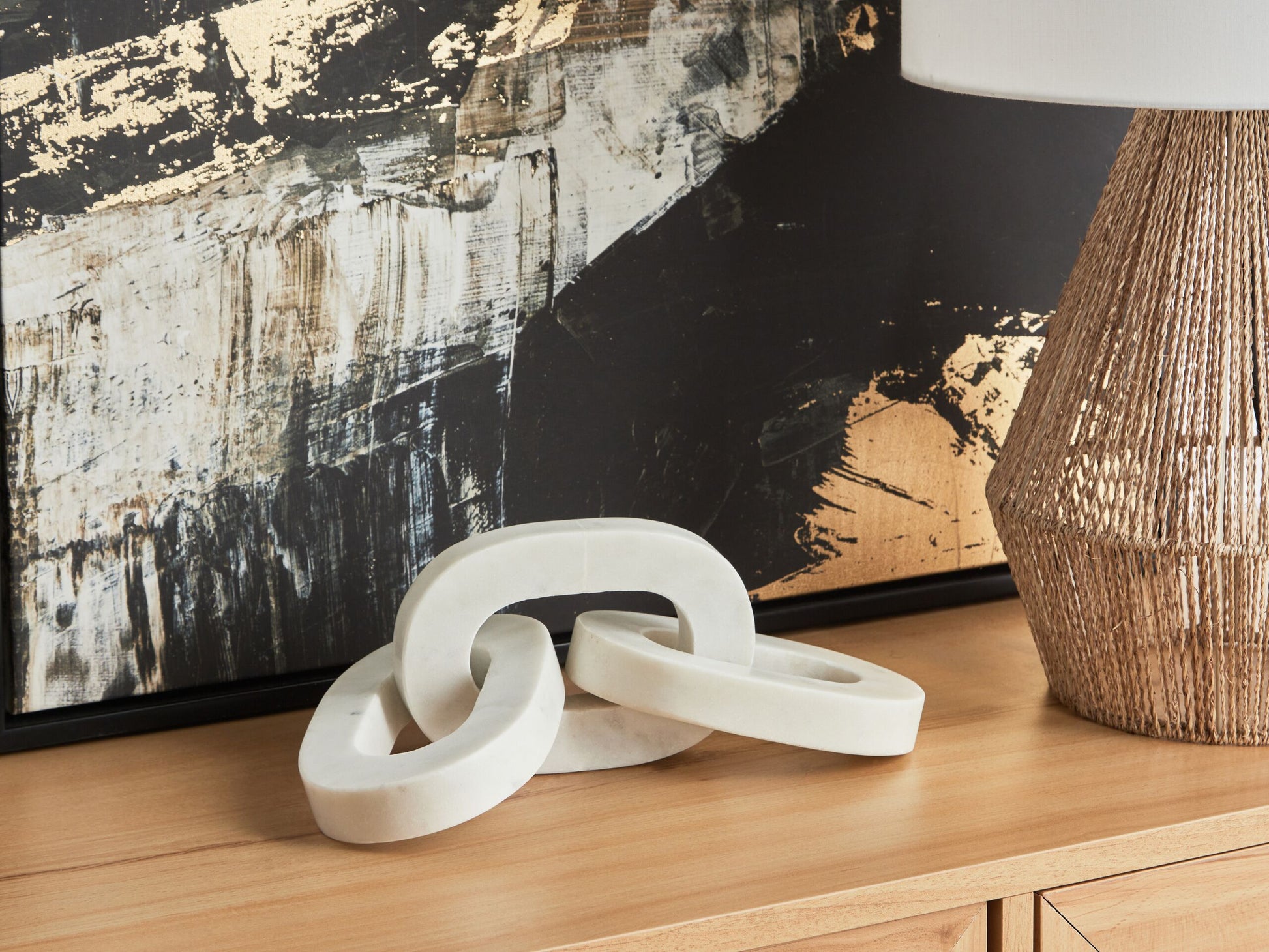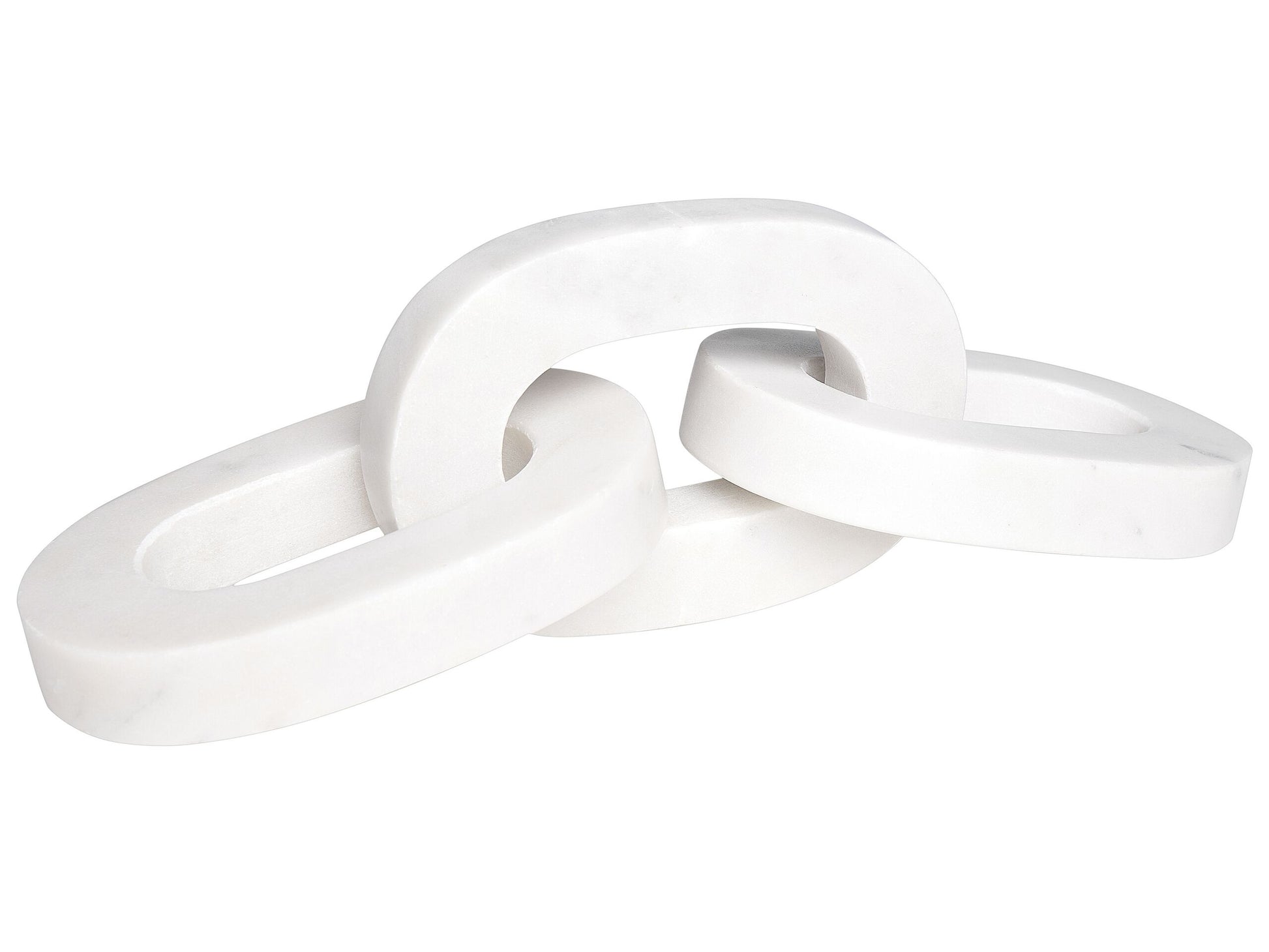Diese Skulptur aus Kettengliedern verleiht Ihren Räumen einen modernen Touch und wird Ihre Gäste begeistern. Handgefertigt aus langlebigem, weiem Marmor, erfordert sie nur minimale Montage und hält viele Jahre. Aufgrund ihres Designs und ihrer Grösse passt sie perfekt in ein Wohnzimmer, auf ein Regal oder ein Sideboard. Material: Marmor. Gewicht: 2 Montage: Benötigt keine Montage Das Angebot beinhaltet: 1 x Dekoration Höhe: 11 zusätzliche Information: Da jedes Produkt handgefertigt wird, kann es zu kleineren Abweichungen in der Farbe und der äusseren Struktur kommen. Diese Abweichungen stellen keinen Qualitätsmangel dar, sondern sind eine warentypische Eigenschaft. Breite: 32 Tiefe: 11 Art: Dekofigur Stil: Modern Allgemeine Farbe: Weiss Hauptmaterial: Marmor