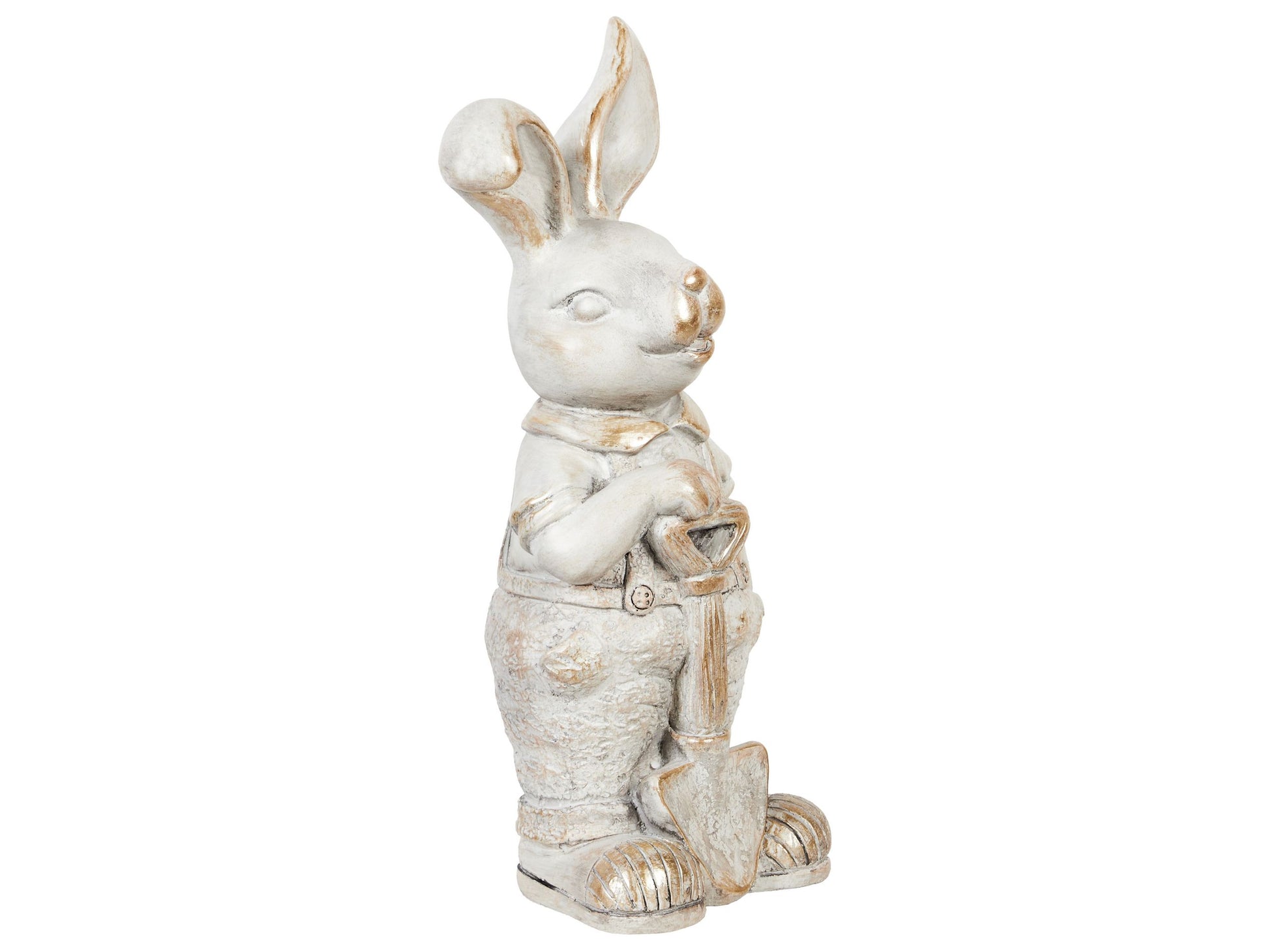 Diese charmante Hasenfigur mit einer verwitterten Optik und kupferfarbenen Details verleiht Ihrem Zuhause oder Garten einen rustikalen und eleganten Touch. Perfekt für den Innen- und Aussenbereich harmoniert sie wunderbar mit jedem Einrichtungsstil. Ob auf einem Kamin, Regal oder zwischen Pflanzen im Freien platziert, bringt dieses kunstvoll gestaltete Stück das ganze Jahr über eine warme und einladende Atmosphäre in die Umgebung. Material: Leichtbeton (MgO). Gewicht: 0.9 Montage: Benötigt keine Montage Das Angebot beinhaltet: 1 x Dekofigur Höhe: 36 zusätzliche Information: Bitte beachten Sie, dass das Produkt wetterempfindlich ist und bei Nichtgebrauch im Inneren aufbewahrt werden sollte., Der sichtbare Alterungseffekt, sowie jede Art von Verfärbung oder Abnutzung sind absichtlich und stellen keinen Qualitätsmangel des Produkts dar., Da jedes Produkt handgefertigt wird, kann es zu kleineren Abweichungen in der Farbe und der äusseren Struktur kommen. Diese Abweichungen stellen keinen Qualitätsmangel dar, sondern sind eine warentypische Eigenschaft. Breite: 13 Tiefe: 10 Art: Gartenfigur Stil: Klassisch Allgemeine Farbe: Weiss Hauptmaterial: Leichtbeton (MgO)