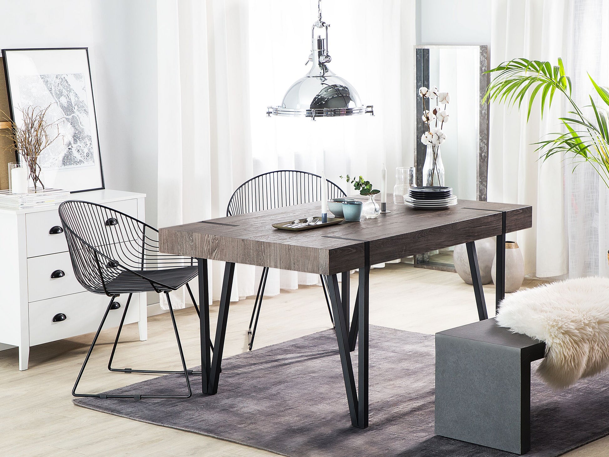 Gemütliches Mittagessen mit Ihrer Familie oder ein Treffen mit Freunden - ein schöner Esstisch mit grosser Tischplatte für viel Ablagefläche ist unerlässlich. Die Materialkombination aus MDF in dunkler Holzoptik und Metall in mattem Schwarz geben diesem robusten Tisch sein rustikales Flair. Sein Design und die Formgebung der vier spitzen Beine verleihen ihm zugleich eine moderne Ausstrahlung. Somit passt er zu modernen und industriellen Wohnstilen genauso gut, wie zu einem natürlichen Stil oder einer Einrichtung im Loftstil. Material: MDF-Platte. Zusätzliches Material: Metall. Gewicht: 45 Kapazität: 6 Personen Montage: Beine / Füsse nicht montiert Gewichtskapazität: 80 Beine Höhe: 65 Das Angebot beinhaltet: 1 x Tisch Höhe: 75 zusätzliche Information: Um die Haltbarkeit und die Ästhetik der Arbeitsplatte zu erhalten, sollte man Platzsets und Untersetzer verwenden und feuchte Stellen schnellstmöglich trocken wischen, um Produktschäden zu vermeiden. Gestalten: Rechteckig Breite: 90 Länge: 180 Art: Esstisch Stil: Industriell Allgemeine Farbe: Dunkler Holzfarbton Hauptmaterial: MDF-Platte