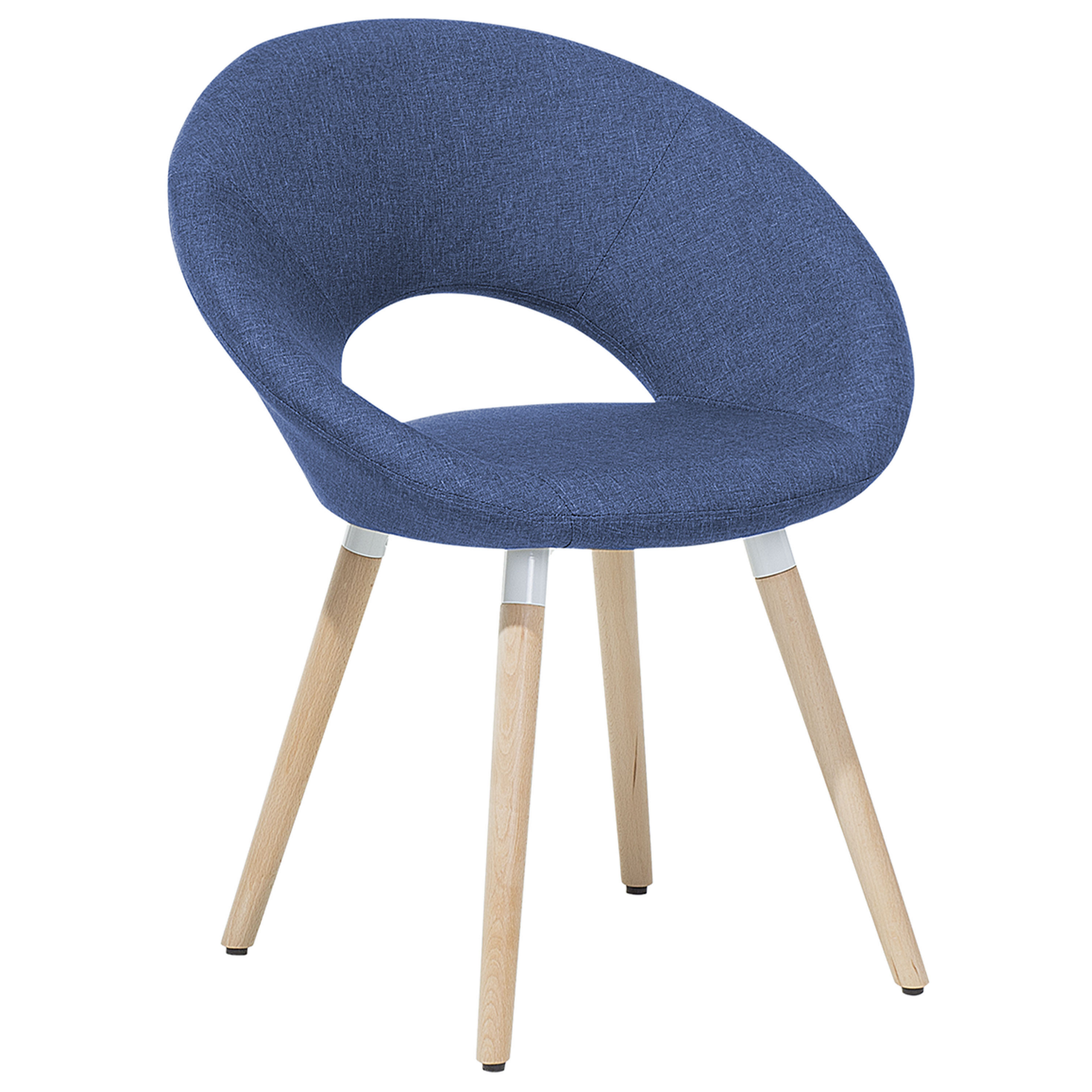 Sie suchen hochwertige und vor allem bequeme Stühle in einzigartigem Design? Dann haben Sie mit diesen trendy Polsterstühlen genau die richtige Wahl getroffen! Die charmanten, bequem gepolsterten Stühle haben dank der runden Form viel Retro Flair und stilvolle Eleganz. Der marineblaue Bezug aus hochwertigem Polyester ist strapazierfähig und besonders pflegeleicht. Ausgefallene Details sind die mittig offen gestaltete Rückenlehne und die sichtbare, weisse Befestigung der stabilen Stuhlbeine aus hellbraunem Buchenholz.  Material: Polyester. Zusätzliches Material: Buchenholz.  Material Zusammensetzung: 100% Polyester Gewicht: 7 Montage: Teilweise montiert Holzart: Fagus Sylvatica Holzursprung: China Gewichtskapazität: 150 Polsterstärke: 6 Sitzhöhe: 46 Das Angebot beinhaltet: 2 x Stühle Sitzfläche: 45x45 Höhe: 80 zusätzliche Information: Um sicherzustellen, dass die Konstruktion stabil und die Nutzungssicherheit gewährleistet ist, sollte man 2 Wochen nach dem Zusammenbau überprüfen, ob die Ware auch korrekt montiert wurde. Ausserdem ist alle 3 Monate zu prüfen, ob die Schrauben richtig festgezogen sind. Breite: 66 Tiefe: 45 Art: Esszimmerstuhl 2er Set Stil: Retro Allgemeine Farbe: Blau Schatten: Marineblau Hauptmaterial: Polyester