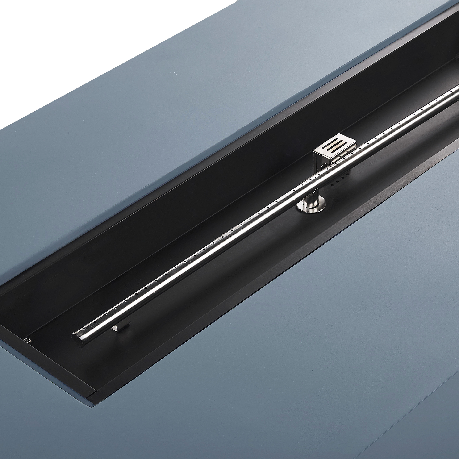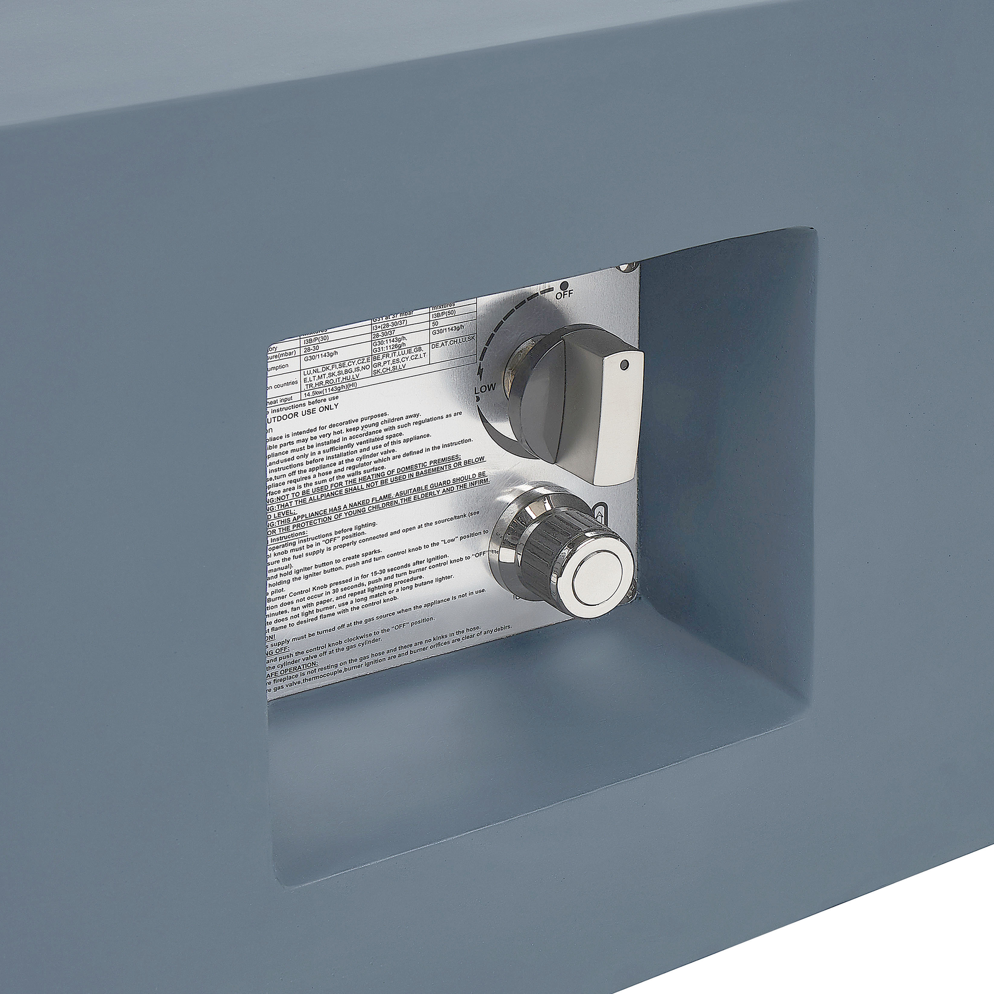 Beschreibung: Schlichtes, modernes und zeitloses Design mit gradliniger Formgebung trifft auf Wärme und Gemütlichkeit! Die längliche, rechteckige Feuerstelle aus langlebigem, graphitgrauem Leichtbeton wird Sie mit eleganter Ausstrahlung begeistern. Geniessen Sie an herrlichen Sommerabenden Lagerfeuerstimmung auf schönstem Niveau! Die für Propangas geeignete Feuerstelle ist leicht zu bedienen. Die Gasflasche wird bei dieser Feuerstelle ausserhalb des Gehäuses gelagert. Eine Gasflasche sowie ein externer Behälter für die Gasflasche sind nicht im Lieferumfang enthalten. Material: Leichtbeton (MgO). Zusätzliches Material: Edelstahl. Gewicht: 67 Montage: Installation benötigt Das Angebot beinhaltet: 1 x Feuerstelle, 1 x Edelstahlbrenner, 1 x Gasschlauch, 1 x Gasdruckregler, 1 x Lavasteine (6 Kg), Nicht im Lieferumfang enthalten: Gasflasche Höhe: 31 zusätzliche Information: Wenn die Feuerstelle nicht benutzt wird, sollte sie über den Winter im Innenbereich aufbewahrt werden um Frostschäden zu vermeiden., Bei der Verwendung muss der Benutzer die Brandschutzbestimmungen einhalten und sicherstellen, dass der Boden und die Umgebung feuerfest sind. Beschädigungen der Außenanstrichschicht sind vor Feuchtigkeit zu schützen. Breite: 143 Tiefe: 71 Art: Feuerstelle Allgemeine Farbe: Grau Hauptmaterial: Leichtbeton (MgO) Brennleistung: 11.72 kWh Brennstoff: Propangas