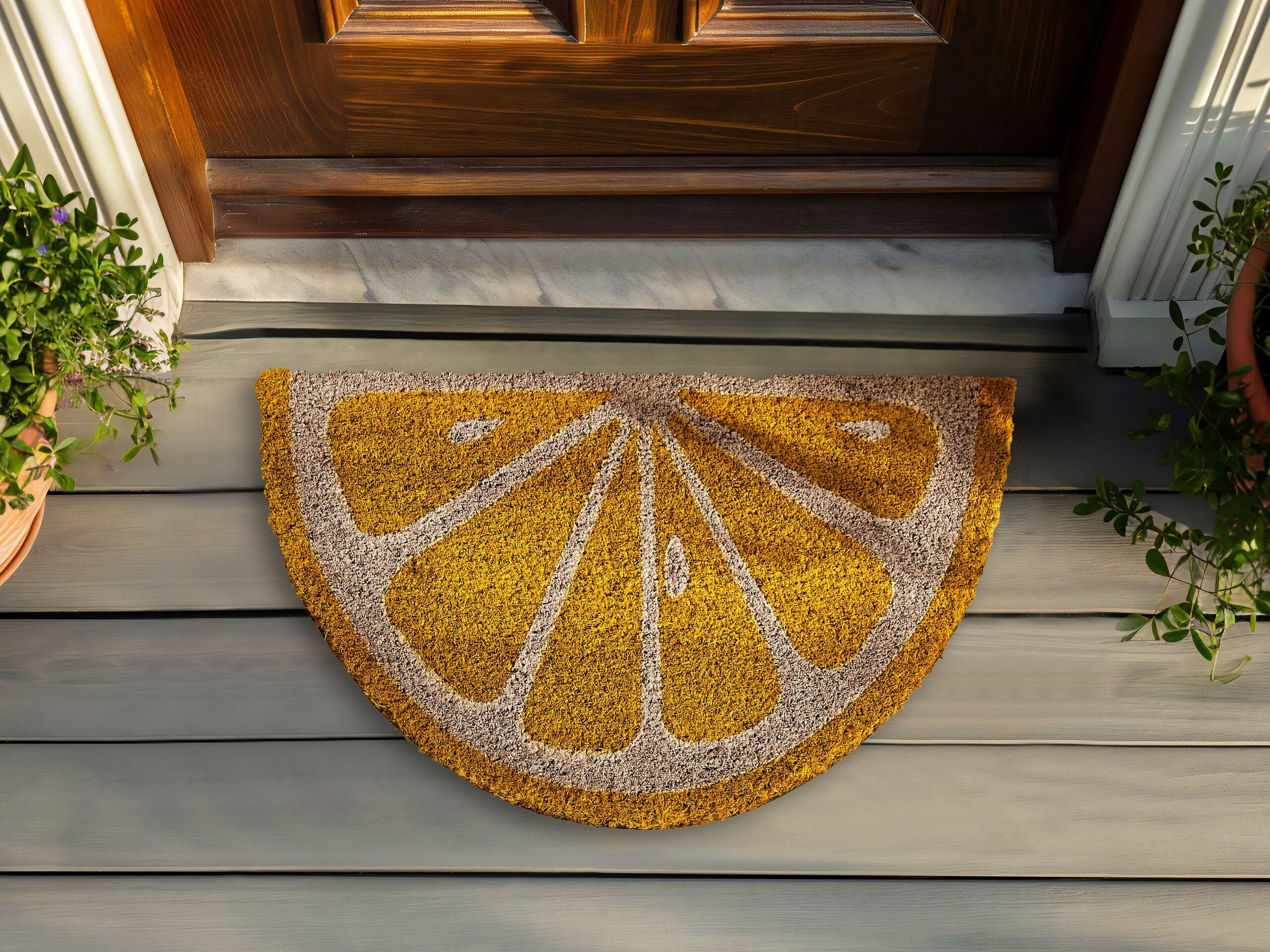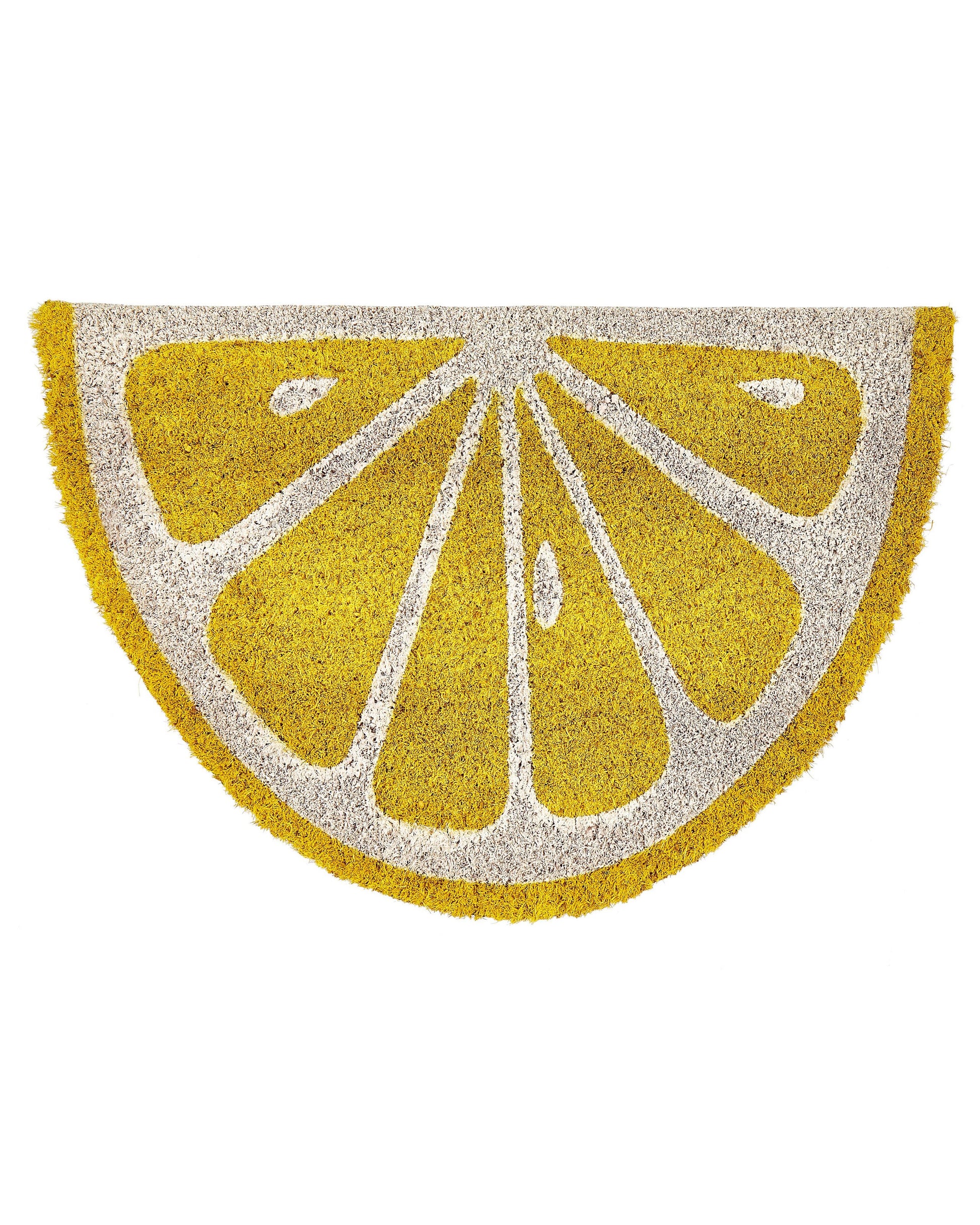 Entdecken Sie die perfekte Mischung aus Funktionalität und Stil mit dieser Fussmatte für den Innenbereich, die aus natürlichen Kokosfasern hergestellt wird. Diese Matte ist eine umweltfreundliche Wahl, die nicht nur einfach Schmutz und Feuchtigkeit aufnimmt, sondern mit ihrer robusten, rutschfesten Rückseite auch für Sicherheit sorgt. Dank ihrer zitronenähnlichen Form und Farbe ist sie ausserdem ein echter Hingucker. Diese Fussmatte, die den Boden sauber hält und dem Raum mühelos Eleganz verleiht, ist ein Muss für jeden Einrichtungsstil, von modern bis Boho. Material: Kokosfasern. Material Zusammensetzung: 100% Kokosfaser Gewicht: 1.4 Montage: Benötigt keine Montage Das Angebot beinhaltet: 1 x Fussmatte Gestalten: Halbrund Breite: 40 Länge: 60 Art: Fussmatte Stil: Modern Allgemeine Farbe: Gelb Muster: Pflanzenmuster Hauptmaterial: Kokosfasern