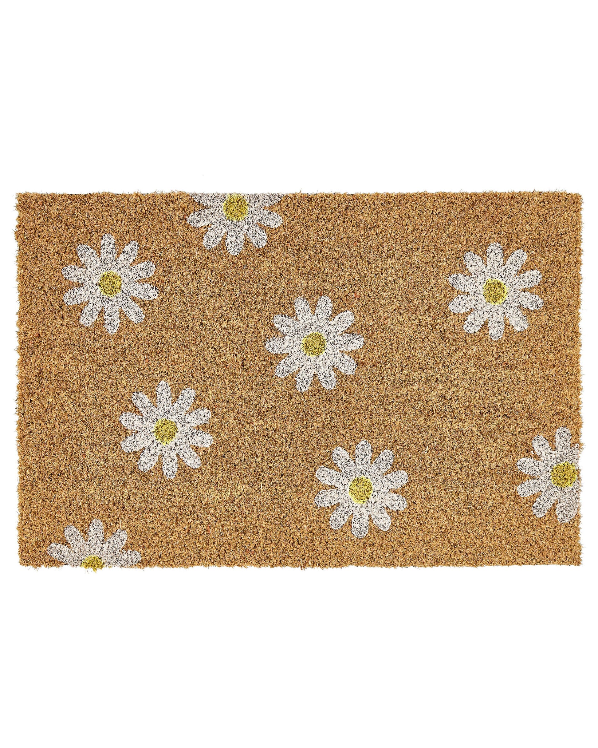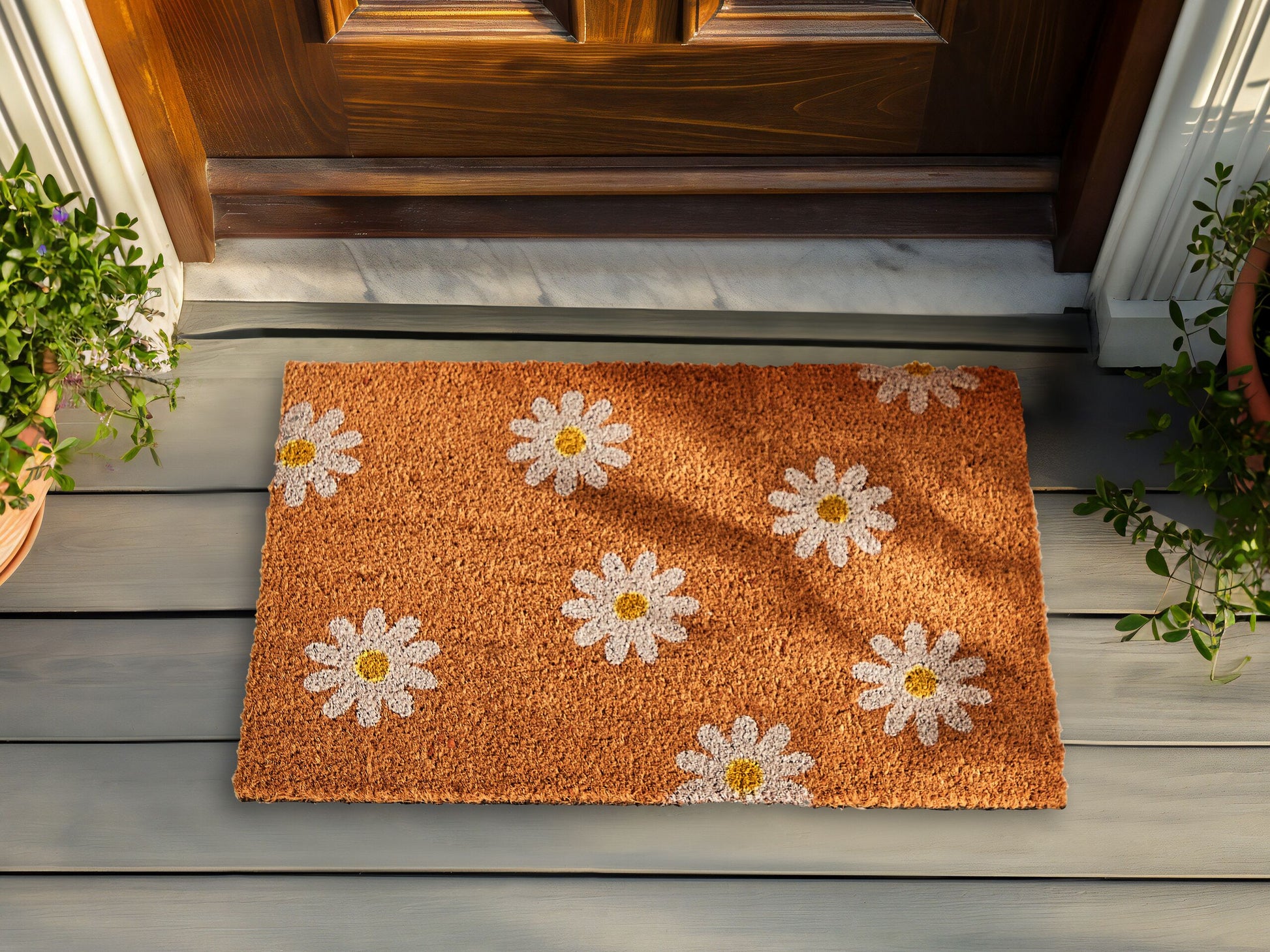 Beschreibung: Beeindrucken Sie Ihre Gäste schon an der Eingangstür - mit dieser Fussmatte ist das ganz einfach. Das farbenfrohe Gänseblümchenmuster verleiht Ihrem Raum eine warme, frühlingshafte Atmosphäre. Die Matte besteht aus umweltfreundlichen, nachhaltigen Kokosfasern, die sie langlebig und feuchtigkeitsabsorbierend machen. Die rutschfeste Rückseite sorgt für zusätzliche Sicherheit und hält die Matte fest an ihrem Platz. Diese Fußmatte ist die perfekte Wahl, um Ihre Böden sauber zu halten und gleichzeitig Ihrem Flur einen modernen Look zu verleihen. Material: Kokosfasern. Material Zusammensetzung: 100% Kokosfaser Gewicht: 1.4 Montage: Benötigt keine Montage Das Angebot beinhaltet: 1 x Fussmatte Gestalten: Rechteckig Breite: 40 Länge: 60 Art: Fussmatte Stil: Modern Allgemeine Farbe: Naturfarben Muster: Blumenmuster Hauptmaterial: Kokosfasern