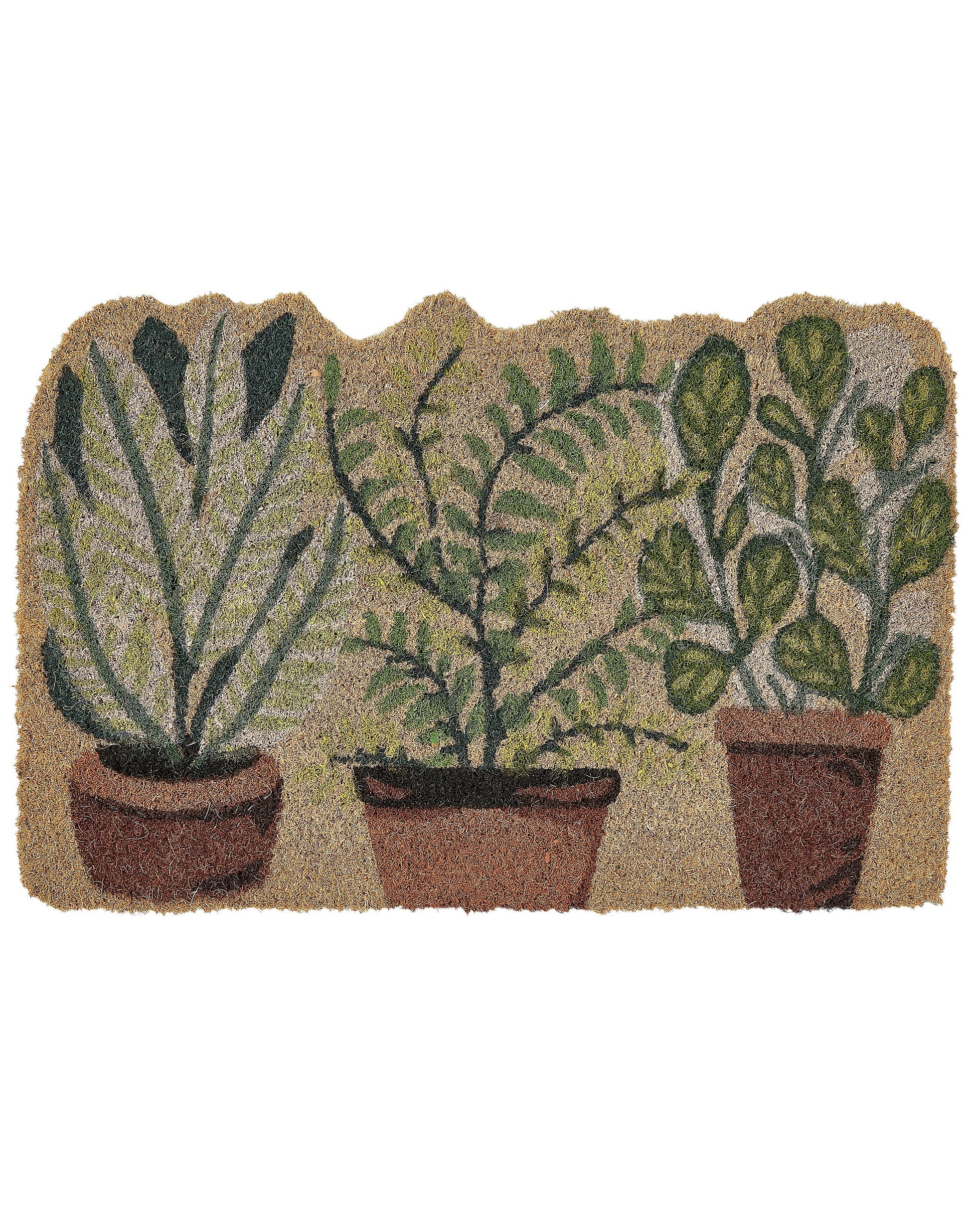 Diese aus natürlichen Kokosfasern gefertigte Fussmatte vereint Funktionalität und Design. Die besondere Form verleiht ihr einen einzigartigen Charakter, während das Motiv drei Pflanzen in charmanten Töpfen zeigt. Die umweltfreundliche Matte fängt Schmutz und Feuchtigkeit auf und ist mit einer robusten, rutschfesten Unterseite ausgestattet, die für mehr Sicherheit sorgt. Darüber hinaus sorgt sie für Sauberkeit als auch Eleganz zugleich, und harmoniert wunderbar mit jeder Inneneinrichtung. Material: Kokosfasern. Material Zusammensetzung: 100% Kokosfaser Gewicht: 1.4 Montage: Benötigt keine Montage Das Angebot beinhaltet: 1 x Fussmatte Gestalten: Unregelmässig Breite: 60 Länge: 40 Art: Fussmatte Stil: Modern Allgemeine Farbe: Naturfarben Muster: Pflanzenmuster Hauptmaterial: Kokosfasern
