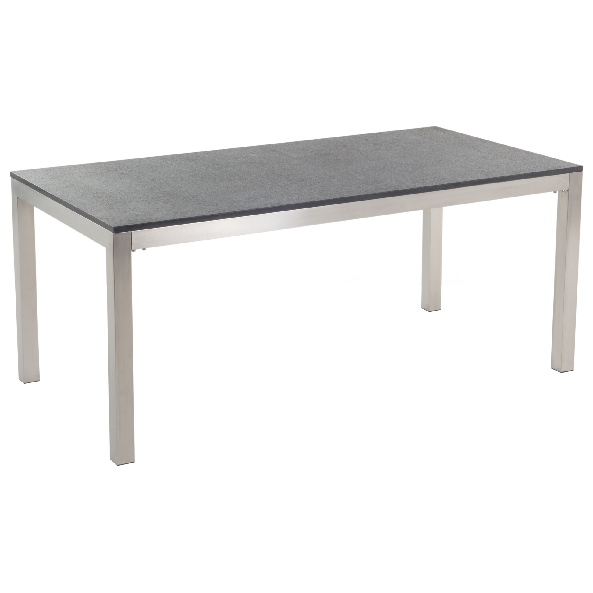Das exquisite Tischset aus wertvollem Edelstahl und Naturstein ist ein ganz besonderes Modell in unserer Produktepallette. Die Materialien der Tischplatte bilden ein Zusammenspiel, welches an Robustheit und Eleganz kaum zu übertreffen ist. Der glänzende Rahmen aus gebürstetem Edelstahl ist äusserst stabil und wasserfest. Die schwarze geflammte Natursteinplatte ist extrem witterungsbeständig und perfekt verarbeitet, so bildet sie eine unverwüstliche Tischoberfläche. Die sechs designer Stühle mit dem standfesten Gestell und erstklassiger UV- beständiger Textilsitzfläche in Grau harmonieren perfekt mit dem robusten Tisch.  Material: Granit. Zusätzliches Material: Polyester, Kunstholz.  Material Zusammensetzung: 90% PVC Gewicht: 170 Kapazität: 6 Personen Montage: Teilweise montiert Gesamtabmessungen: 180x90x70 Tischabmessungen: 180x90x76 Stuhl Abmessungen: 55x58x87 Sitzhöhe: 44 Das Angebot beinhaltet: 1 x Tisch, 6 x Stühle zusätzliche Information: Damit das folgende Produkt jahrelang seine Schönheit beibehält, stellen wir Ihnen ein ausführliches Pflegehandbuch zur Verfügung. Die Pflegeanleitung und Tipps zur richtigen Wartung Ihres neuen Produkts finden Sie finden Sie unten im Abschnitt „Verpackung und Montage“. Art: Garten-Essgruppe für 6 Personen Stil: Industriell Allgemeine Farbe: Grau Schatten: Graphitgrau Hauptmaterial: Granit