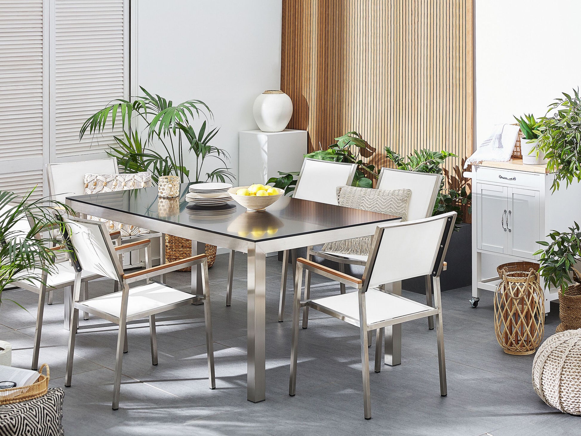 Gartenmöbel Set 6-Sitzer GROSSETO Granit Polierter Schwarz / Weiss
