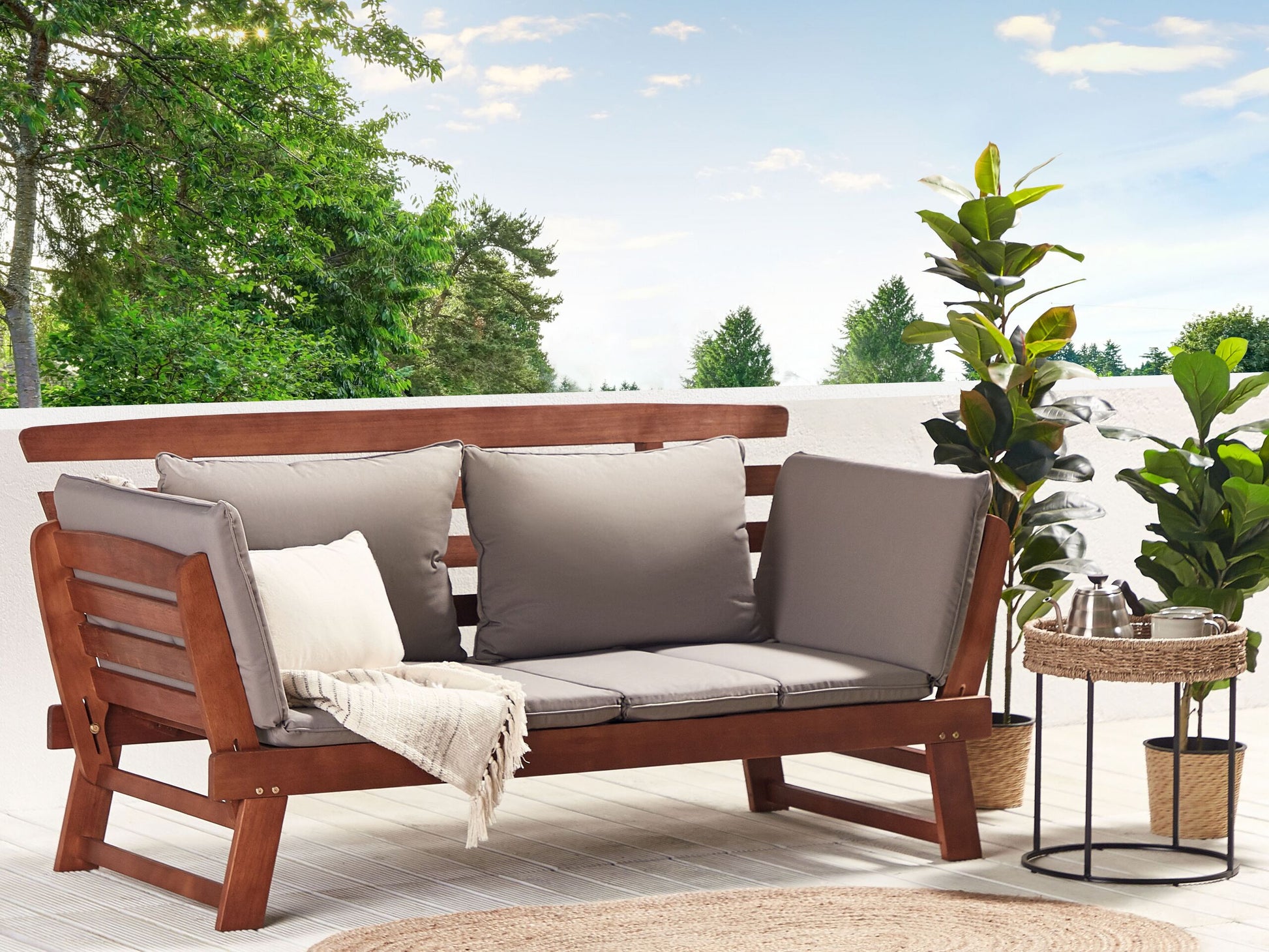 Gartenbank mit Auflage PORTICI 210 cm Eukalyptusholz Dunkelbraun / Taupe