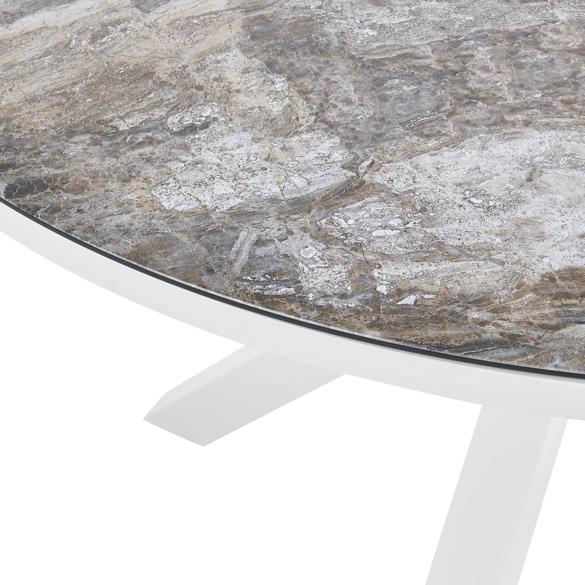 Mit diesem runden Outdoor-Tisch schaffen Sie einen stilvollen und zugleich komfortablen Platz zum Entspannen im Freien. Dank seiner kompakten Grösse und runden Form passt der Esstisch auf jede Terrasse sowie jeden Garten. Der Tisch ist aus äusserst robustem Aluminium und Keramikglas in einer wunderschönen Marmor Optik gefertigt, und daher besonders witterungsbeständig als auch langlebig. Sein modernes und urbanes Design macht den Patiotisch zu einem perfekten Element jedes Innen- als auch Aussenbereichs. Material: Keramikglas. Zusätzliches Material: Aluminium. Gewicht: 30 Kapazität: 4 Personen Montage: Teilweise montiert Gewichtskapazität: 70 Beine Höhe: 71 Das Angebot beinhaltet: 1 x Tisch Höhe: 75 Gestalten: Rund Breite: 120 Länge: 120 Art: Gartentisch Stil: Industriell Allgemeine Farbe: Weiss Schatten: Dunkelgrau Hauptmaterial: Keramikglas
