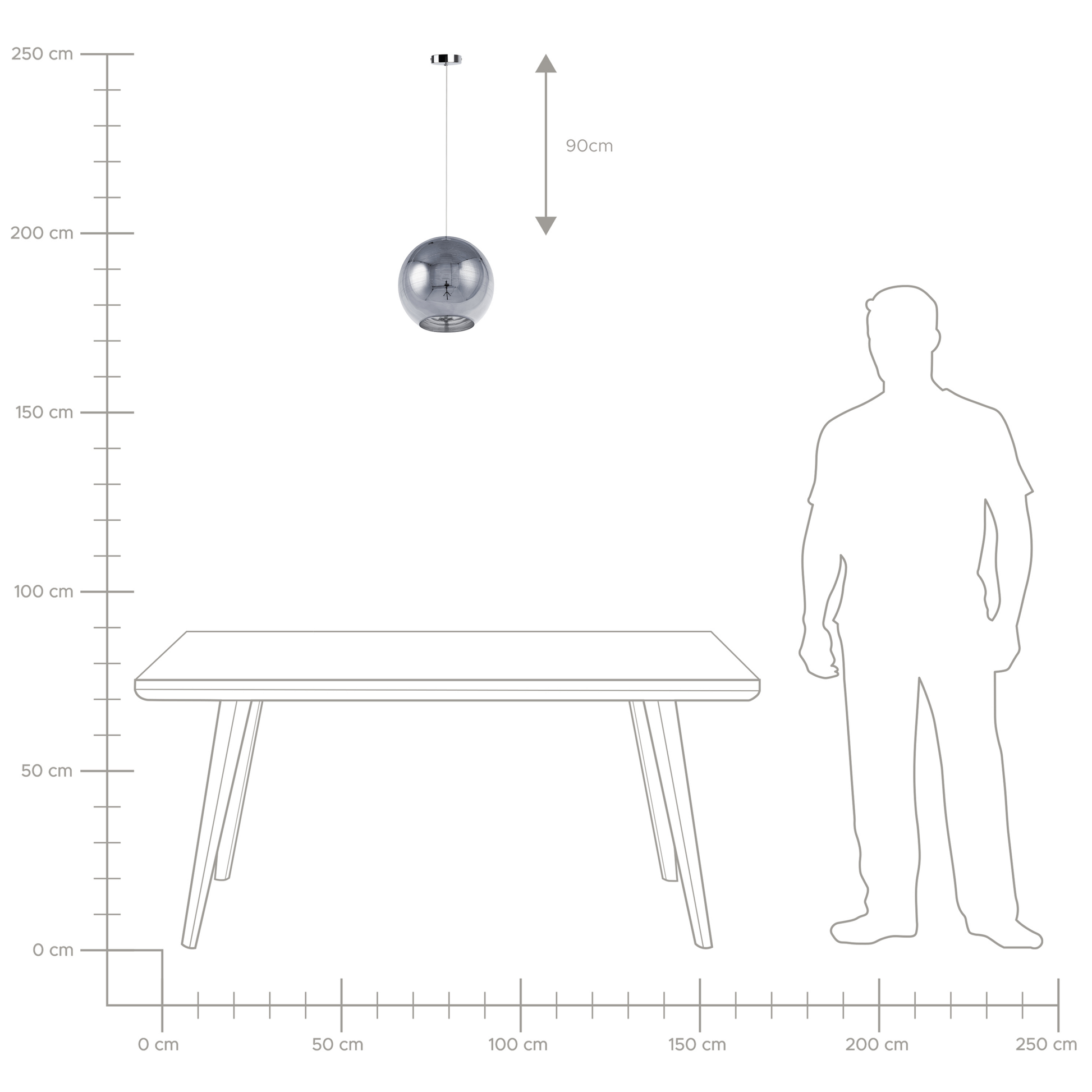 Raffiniert, edel und aussergewöhnlich bringt diese Lampe Licht in Ihr Zuhause. Der kugelförmige Lampenschirm aus silberfarbenem Glas hat eine besonders elegante Ausstrahlung und wird in jedem Wohnstil zu einem glamourösen Blickfang. Material: Glas. Zusätzliches Material: PVC. Gewicht: 2 Montage: Installation benötigt Das Angebot beinhaltet: 1 x Hängeleuchte, Nicht im Lieferumfang enthalten: Leuchtmittel Höhe: 125 zusätzliche Information: Diese Leuchte ist geeignet für Leuchtmittel der Energieklassen A bis G auf einer Skala von A (sehr effizient) bis G (weniger effizient). Geeignet für: LED Leuchtmittel, Eco-Halogen Leuchtmittel, Energiesparleuchtmittel., Die Stromkabel dürfen nur von einem qualifizierten Elektriker angepasst werden. Breite: 25 Tiefe: 25 Art: Hängeleuchte Stil: Modern Allgemeine Farbe: Silber Hauptmaterial: Glas Fassung: Max. 40 W IP Protection Code: IP 20