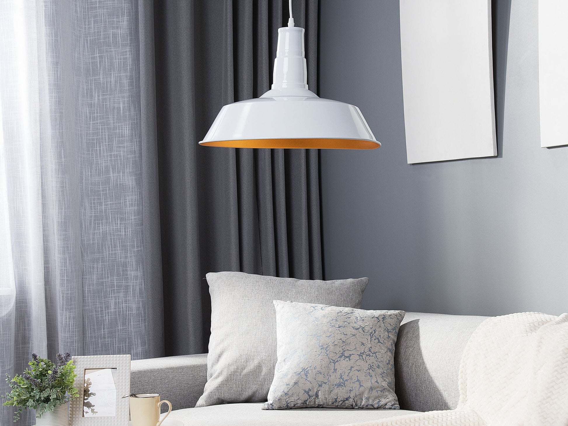 Industrielle Formgebung und modernes Design treffen auf edles, glänzendes Weiss kombiniert mit einem warmen Gelbfarbton. Die dekorative Deckenleuchte hat eine moderne Ausstrahlung und wird mit der trendy Farbkombination zu einem echten Blickfang in Ihrem Heim. Der glänzende Weisston passt zu jedem Einrichtungsstil und dank der gelbfarbenen Innenseite spendet der runde Lampenschirm ein warmes und angenehmes Licht. Das Kabel ist höhenverstellbar.  Material: Aluminium. Gewicht: 2 Montage: Erfordert Installation und Montage Das Angebot beinhaltet: 1 x Hängeleuchte, Nicht im Lieferumfang enthalten: Leuchtmittel Höhe: 177 zusätzliche Information: Diese Leuchte ist geeignet für Leuchtmittel der Energieklassen A bis G auf einer Skala von A (sehr effizient) bis G (weniger effizient). Geeignet für: LED Leuchtmittel, Eco-Halogen Leuchtmittel, Energiesparleuchtmittel., Die Stromkabel dürfen nur von einem qualifizierten Elektriker angepasst werden. Breite: 46 Tiefe: 46 Art: Hängelampe Stil: Modern Allgemeine Farbe: Weiss Hauptmaterial: Aluminium Fassung: Max. 60 W IP Protection Code: IP 20