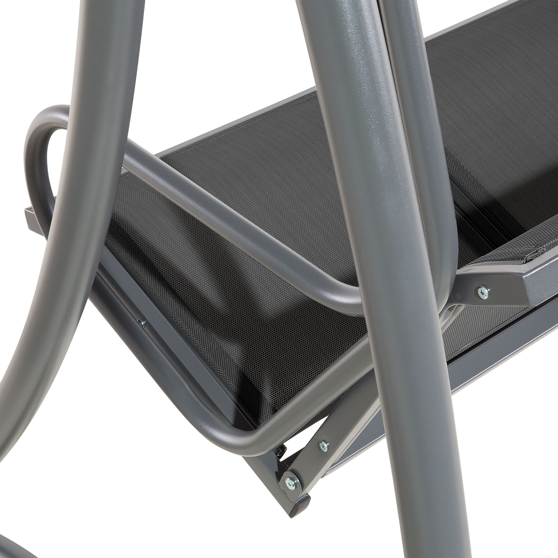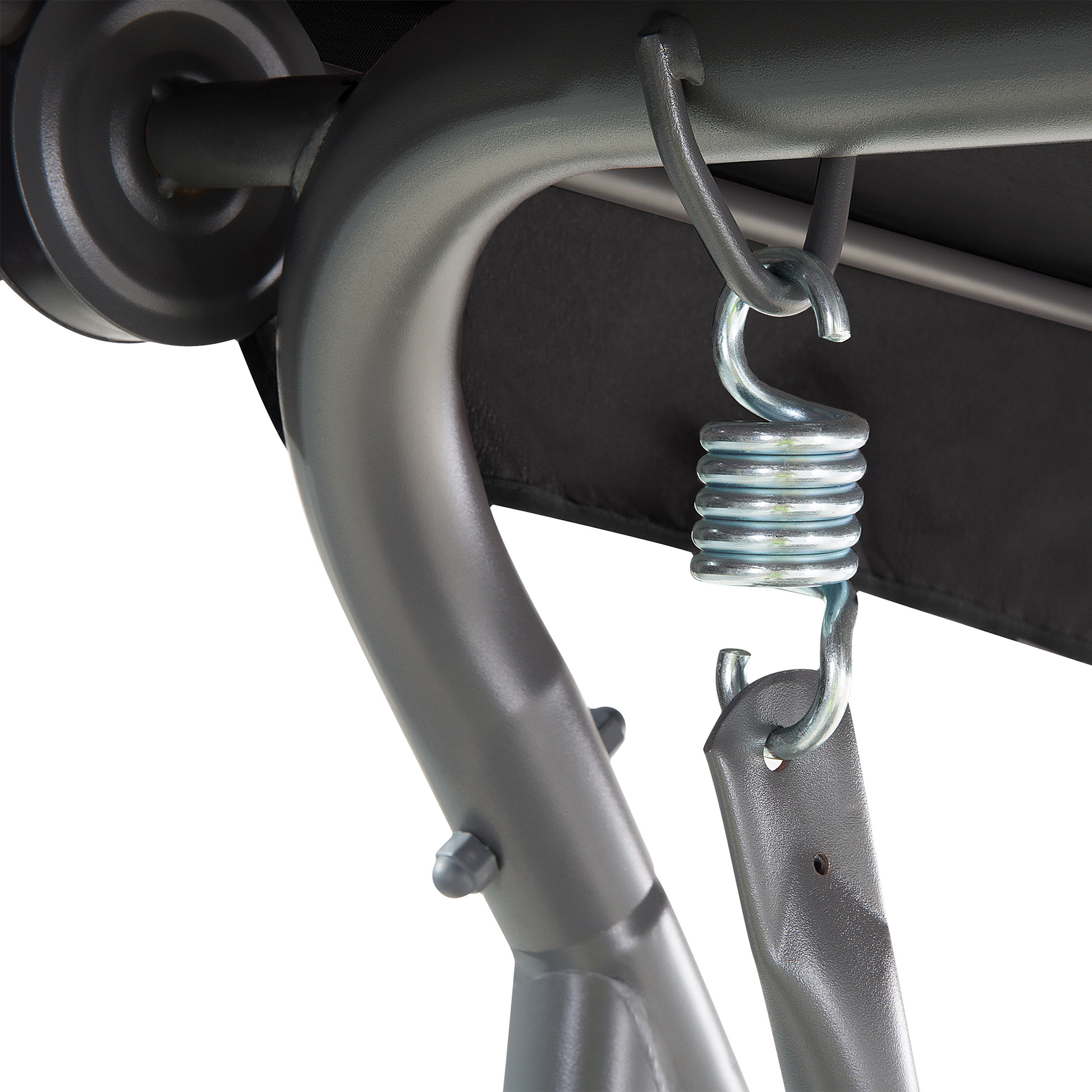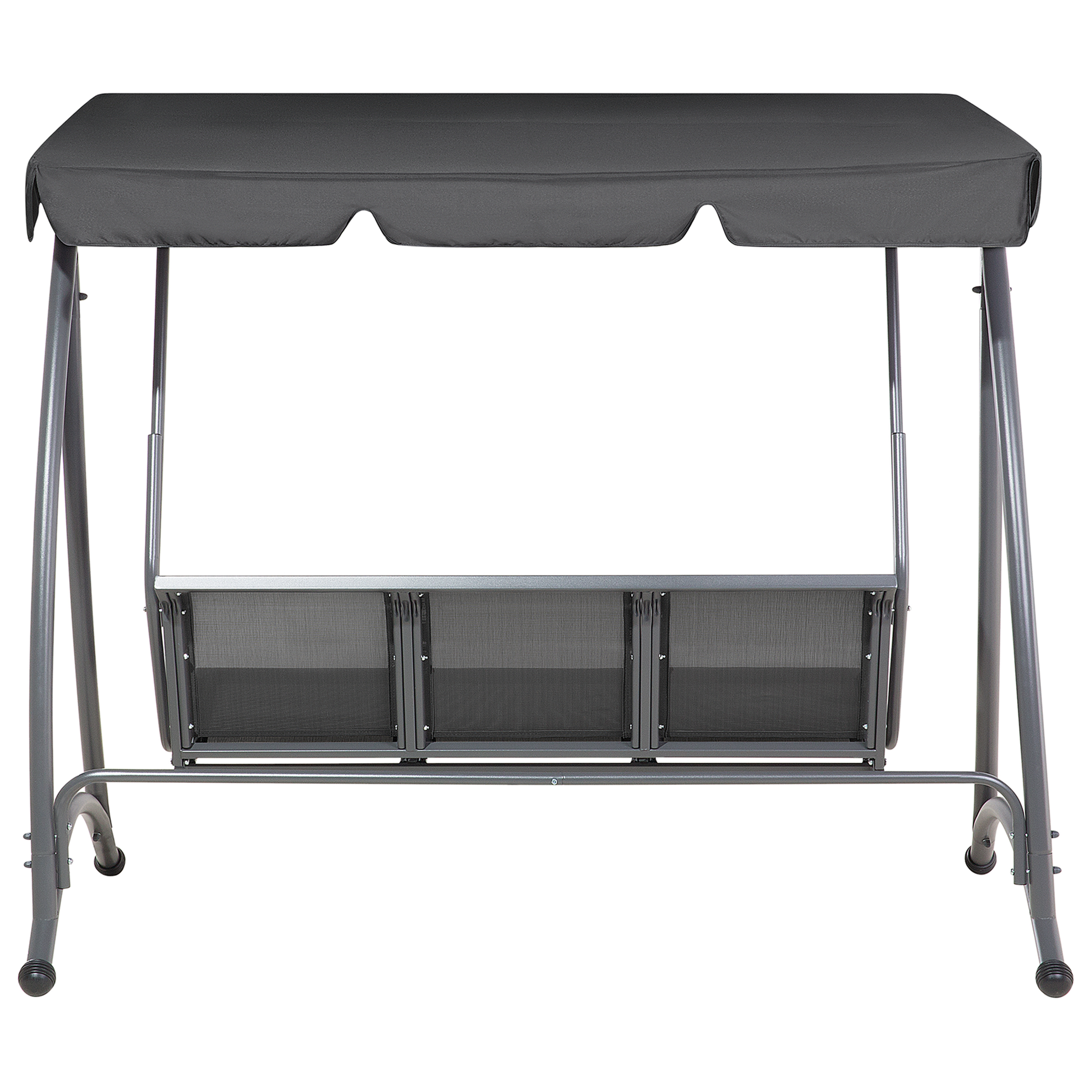 Die luxuriöse Gartenschaukel ist aus stabilem, pulverbeschichtetem Stahl gefertigt und somit äusserst witterungsbeständig. Das gilt auch für die Sitzfläche und die Rückenlehne, die mit strapazierfähigem Netzgewebe bespannt sind. Auf der bequemen Sitzfläche finden drei Personen Platz. Abgerundet wird das Design durch ein Sonnendach aus pflegeleichtem Polyester. Material: Stahl. Zusätzliches Material: Polyester. Gewicht: 40 Kapazität: 3 Personen Montage: Nicht montiert Gewichtskapazität: 280 Sitzhöhe: 46 Das Angebot beinhaltet: 1 x Hollywoodschaukel Sitzfläche: 146x49 Höhe: 169 Breite: 190 Tiefe: 120 Art: Hollywoodschaukel Stil: Klassisch Allgemeine Farbe: Schwarz Hauptmaterial: Stahl