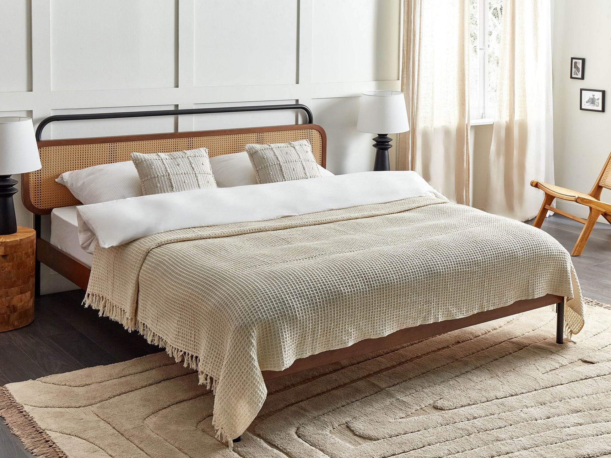 Bringen Sie mit dieser handgefertigten Decke eine gemütliche Atmosphäre in Ihr Zuhause. Sie ist aus einem weichen Baumwollmaterial gefertigt, das Sie an kühlen Tagen und Nächten wärmt. Ihre hellbeige Farbe sorgt in jedem Einrichtungsstil für Behaglichkeit und Wärme. Der Überwurf ist für Ihr Schlafzimmer oder Ihr Wohnzimmer geeignet. Material: Baumwolle. Material Zusammensetzung: 100% Baumwolle Montage: Benötigt keine Montage Das Angebot beinhaltet: 1 x Kuscheldecke zusätzliche Information: Da jedes Produkt handgefertigt wird, kann es zu kleineren Abweichungen in der Farbe und der äusseren Struktur kommen. Diese Abweichungen stellen keinen Qualitätsmangel dar, sondern sind eine warentypische Eigenschaft. Breite: 220 Länge: 240 Art: Kuscheldecke Stil: Boho Allgemeine Farbe: Beige Schatten: Helles Beige Muster: Kein Muster Hauptmaterial: Baumwolle Dichte: 500