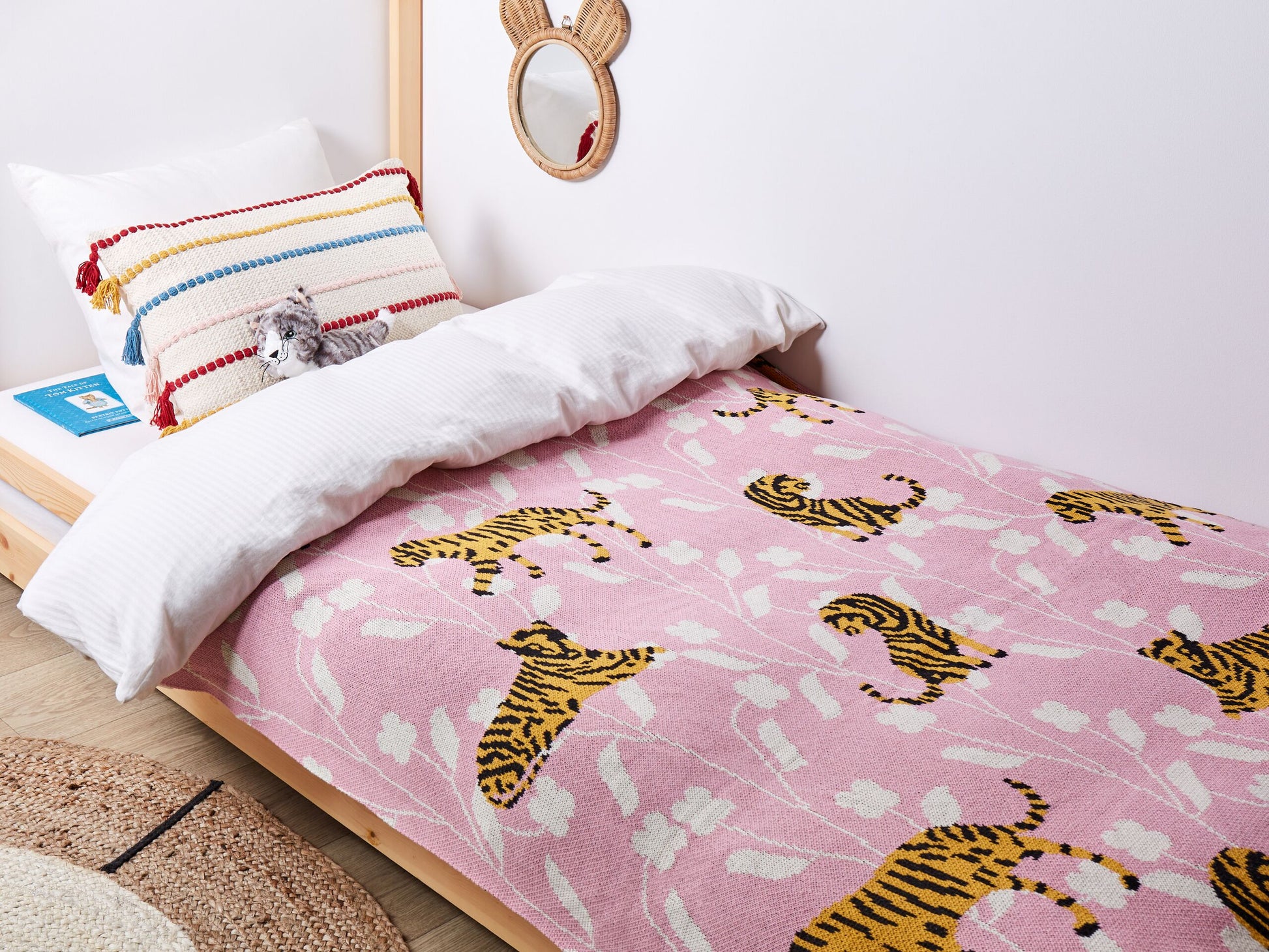 Schenken Sie Ihrem Kind kuschelige Wärme mit dieser Baumwolldecke, die funktional und dekorativ zugleich ist. Mit ihrem bezaubernden Safarimuster ist sie eine hübsche Ergänzung für jedes Zimmer. Da sie in der Waschmaschine gewaschen werden kann, ist diese Decke ebenso praktisch wie stilvoll und passt zu verschiedenen Einrichtungsstilen. Material: Baumwolle. Material Zusammensetzung: 100% Baumwolle Montage: Benötigt keine Montage Das Angebot beinhaltet: 1 x Kuscheldecke Höhe: 0.5 Breite: 130 Länge: 170 Art: Kuscheldecke Stil: Modern Allgemeine Farbe: Bunt Muster: Für Kinder Hauptmaterial: Baumwolle Dichte: 500