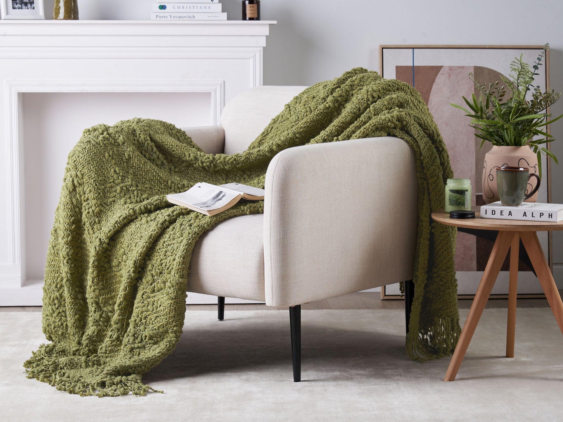 Beschreibung: Hergestellt aus weicher Baumwolle mit einem Acrylanteil, ist diese Decke ein Must-have für jedes gemütliche Zuhause. Ihre gewebte, lockere Struktur, kombiniert mit verspielten Fransen, verleiht ihr einen lässigen Boho-Charme. Ob zum Einkuscheln auf dem Sofa oder als zusätzliche Wärmeschicht auf dem Bett – diese behagliche Wohndecke hält Sie die ganze Jahreszeit über warm. Material: Baumwolle. Zusätzliches Material: Acryl. Material Zusammensetzung: 70% Baumwolle, 30% Acryl Das Angebot beinhaltet: 1 x Kuscheldecke Höhe: 3 zusätzliche Information: Bitte beachten Sie, dass das Produkt aus einem sehr dehnbaren Material gefertigt ist – die auf der Seite angegebenen Masse können je nach Artikel um bis zu 10 cm variieren. Breite: 150 Länge: 200 Art: Kuscheldecke Stil: Boho Allgemeine Farbe: Grün Schatten: Olivgrün Muster: Ohne Muster Hauptmaterial: Baumwolle Dichte: 800