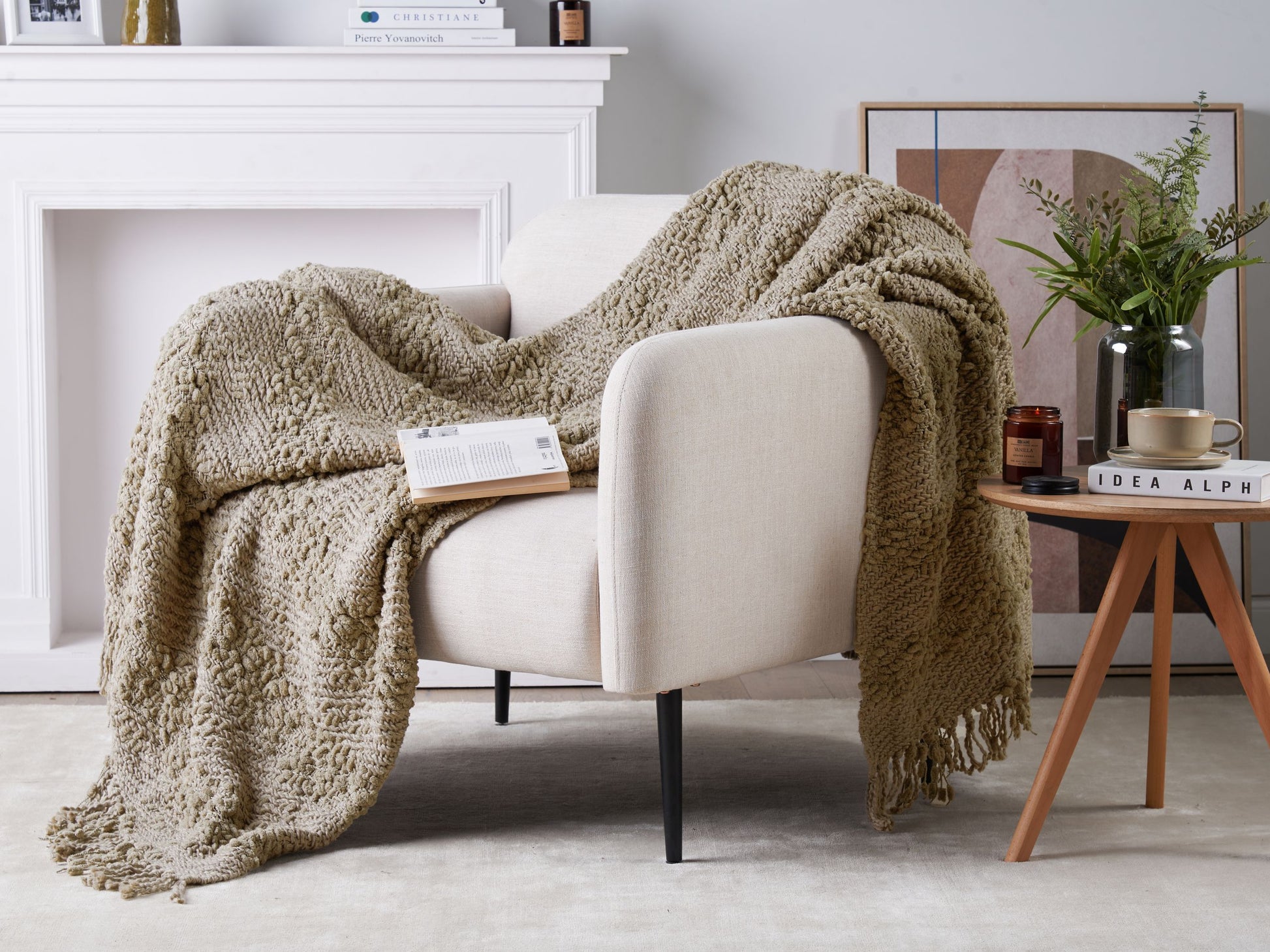 Hergestellt aus weicher Baumwolle mit einem Acrylanteil, ist diese Decke ein Must-have für jedes gemütliche Zuhause. Ihre gewebte, lockere Struktur, kombiniert mit verspielten Fransen, verleiht ihr einen lässigen Boho-Charme. Ob zum Einkuscheln auf dem Sofa oder als zusätzliche Wärmeschicht auf dem Bett – diese behagliche Wohndecke hält Sie die ganze Jahreszeit über warm. Material: Baumwolle. Zusätzliches Material: Acryl. Material Zusammensetzung: 70% Baumwolle, 30% Acryl Das Angebot beinhaltet: 1 x Kuscheldecke Höhe: 3 zusätzliche Information: Bitte beachten Sie, dass das Produkt aus einem sehr dehnbaren Material gefertigt ist – die auf der Seite angegebenen Masse können je nach Artikel um bis zu 10 cm variieren. Breite: 150 Länge: 200 Art: Kuscheldecke Stil: Boho Allgemeine Farbe: Beige Schatten: Taupe Muster: Ohne Muster Hauptmaterial: Baumwolle Dichte: 800