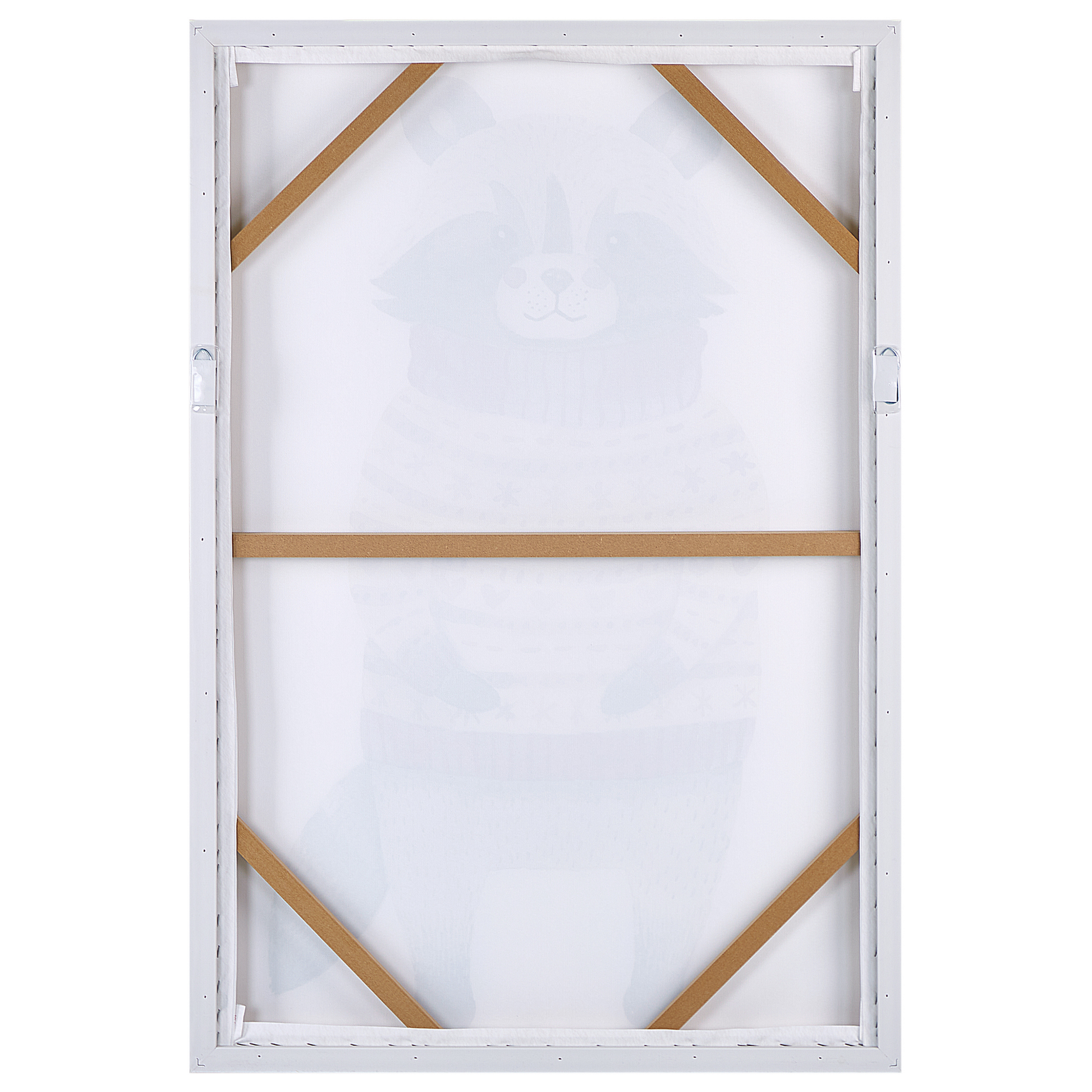 Bringen Sie mit diesem charmanten Wandbild eine fröhliche Stimmung und Wärme in jedes Kinderreich. Der bedruckte Canvas ist in einem schmalen Kunststoffrahmen eingefasst, der in einer edlen Holzoptik gehalten ist und die Aufmerksamkeit auf das farbenreiche Tiermotiv lenkt. Dabei punktet der Polystyrol-Bilderrahmen mit seinem leichten Gewicht und den zusätzlichen Haken auf der Rückseite, die es Ihnen erlauben, das Rahmenbild einfach an der Wand anzubringen. Mit seinen sanften Farben und dem Motiv eines Waschbären, der einen kuscheligen Pullover trägt, wird das Leinwandbild die Kreativität und Fantasie Ihrer Kleinen sicherlich anregen. Material: Polyester. Zusätzliches Material: MDF-Platte, Kunststoff. Gewicht: 2 Montage: Benötigt keine Montage Das Angebot beinhaltet: 1 x Bild Höhe: 93 Gestalten: Rechteckig Breite: 63 Tiefe: 5 Art: Canvas Stil: Modern Allgemeine Farbe: Grau Hauptmaterial: Polyester Orientierung: Vertikal