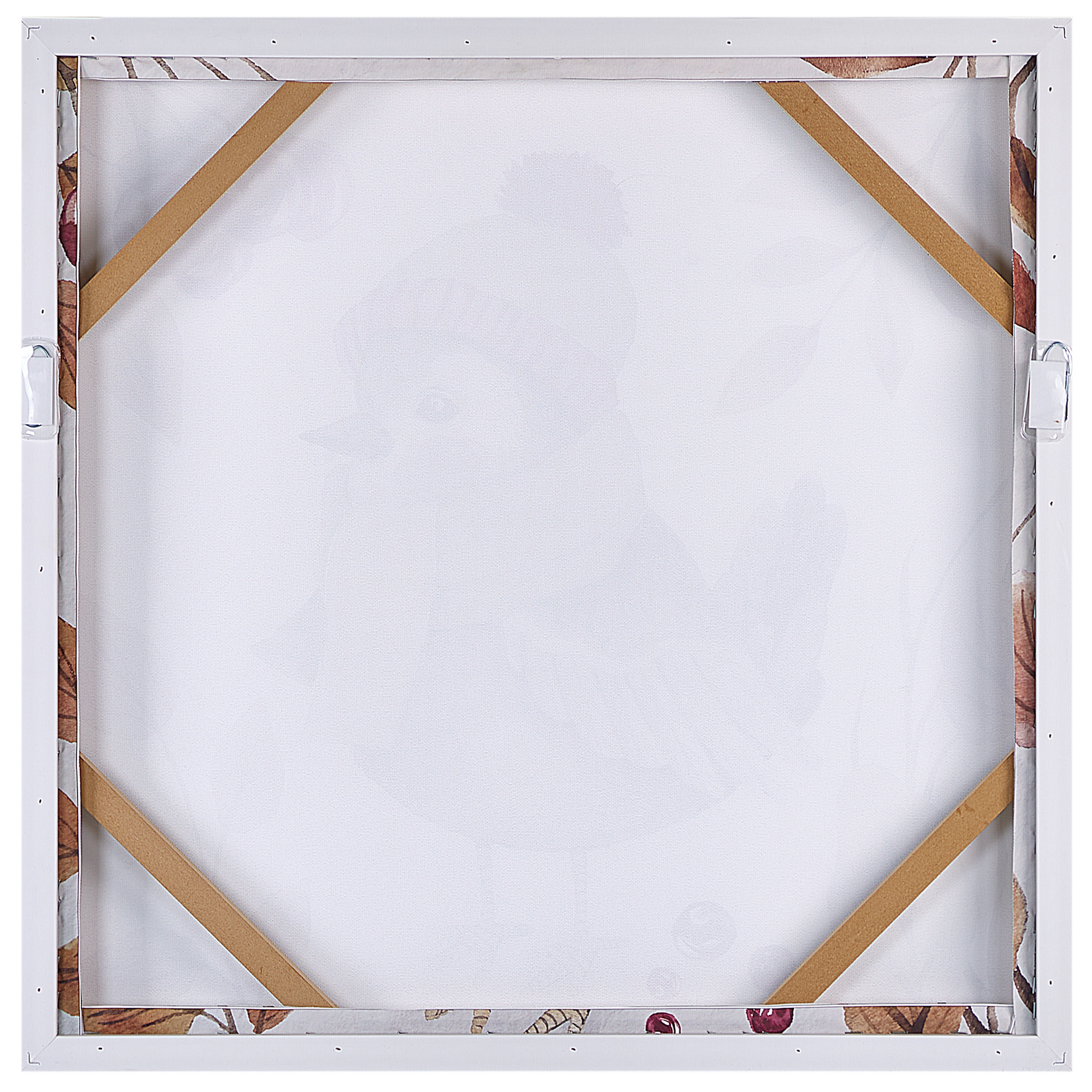 Greifen Sie zu diesem charmanten Wandbild und entdecken Sie, wie spielerisch einfach es ist, das Kinderzimmer aufzufrischen. Der bedruckte Canvas ist in einen schmalen Kunststoffrahmen eingebettet, der in einer edlen Holzoptik gehalten ist und die Aufmerksamkeit auf das farbenreiche Tiermotiv lenkt. Das niedliche Motiv stellt einen Vogel dar, der eine Mütze und einen Schal trägt und mit herbstlichen Pflanzen umgeben ist. Während der Herbstvogel die Kreativität und Fantasie Ihrer Kleinen anregt, bringen die sanften Farbtöne Wärme und Gemütlichkeit in das Kinderreich, sodass sich Ihre Kinder in ihrem Zimmer immer geborgen fühlen werden. Dank der Metallhaken auf der Rückseite gestaltet sich die Wandmontage ganz einfach. Material: Polyester. Zusätzliches Material: MDF-Platte, Metall. Gewicht: 2 Montage: Benötigt keine Montage Das Angebot beinhaltet: 1 x Bild Höhe: 63 Gestalten: Quadratisch Breite: 63 Tiefe: 5 Art: Canvas Stil: Modern Allgemeine Farbe: Bunt Hauptmaterial: Polyester Orientierung: Vertikal