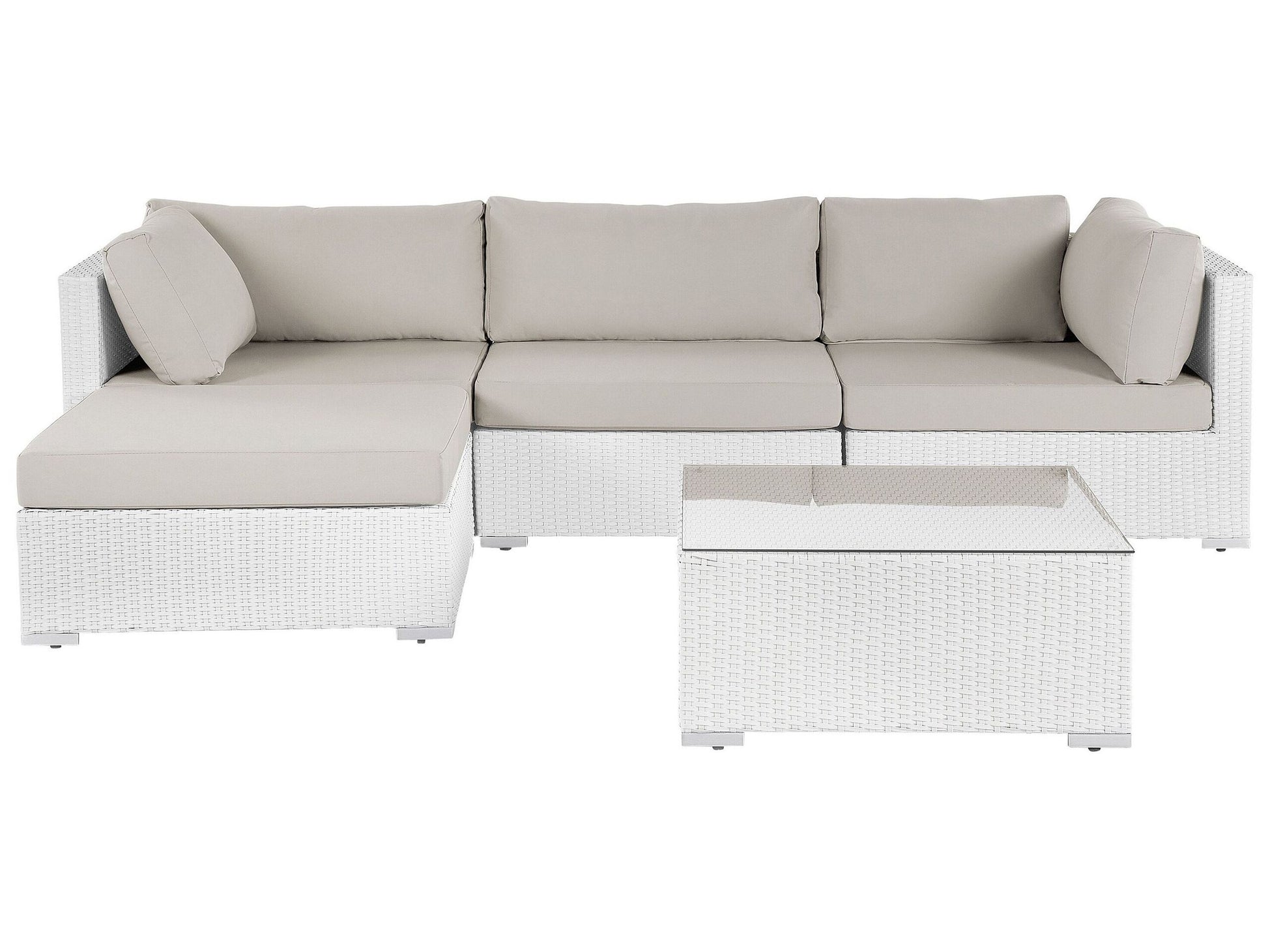 Garten Ecksofa mit Tisch 4-Sitzer SANO II rechtsseitig modular Polyrattan Weiss