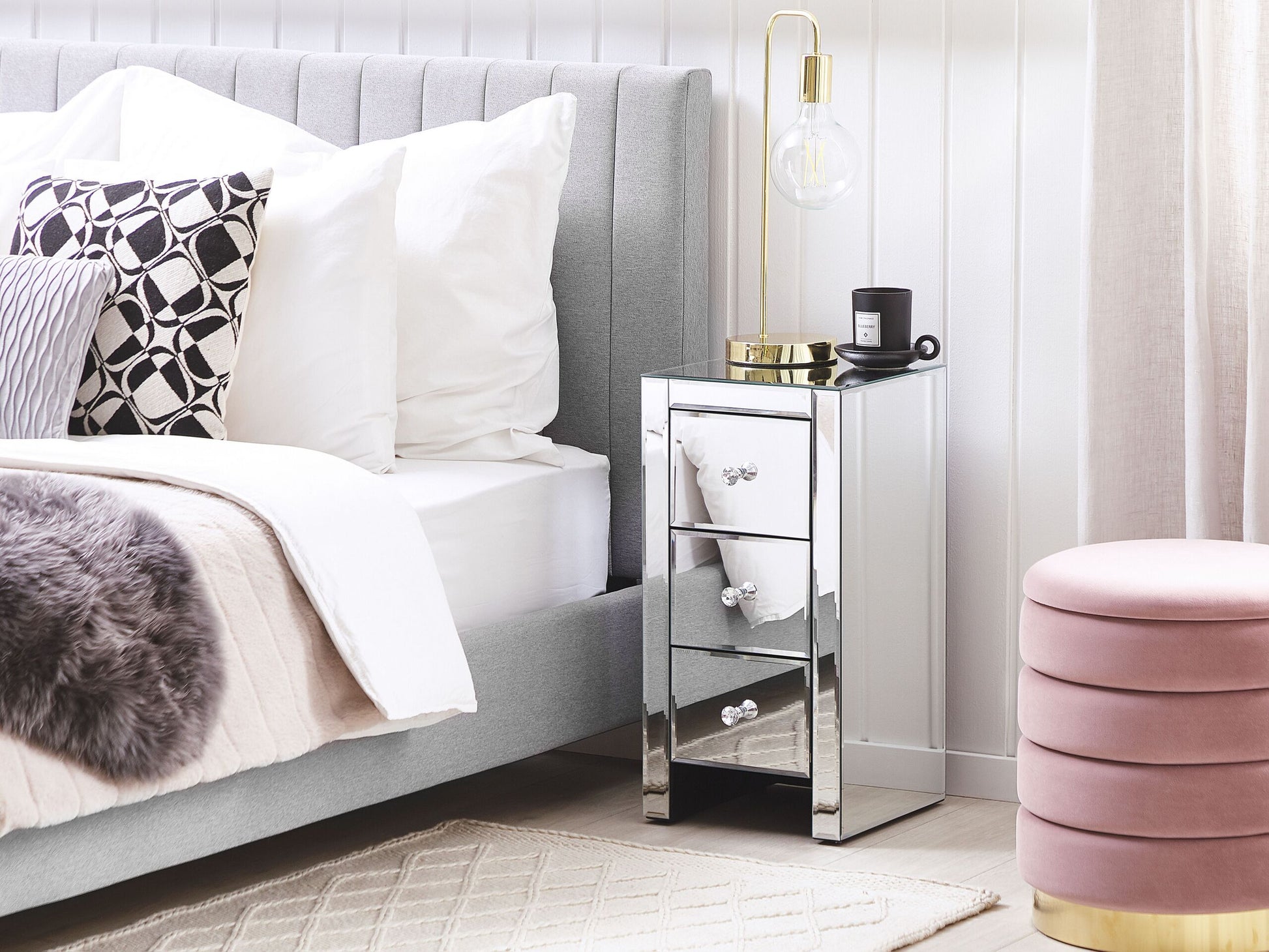Nachttisch mit 3 Schublade LORRIS Glas Silber