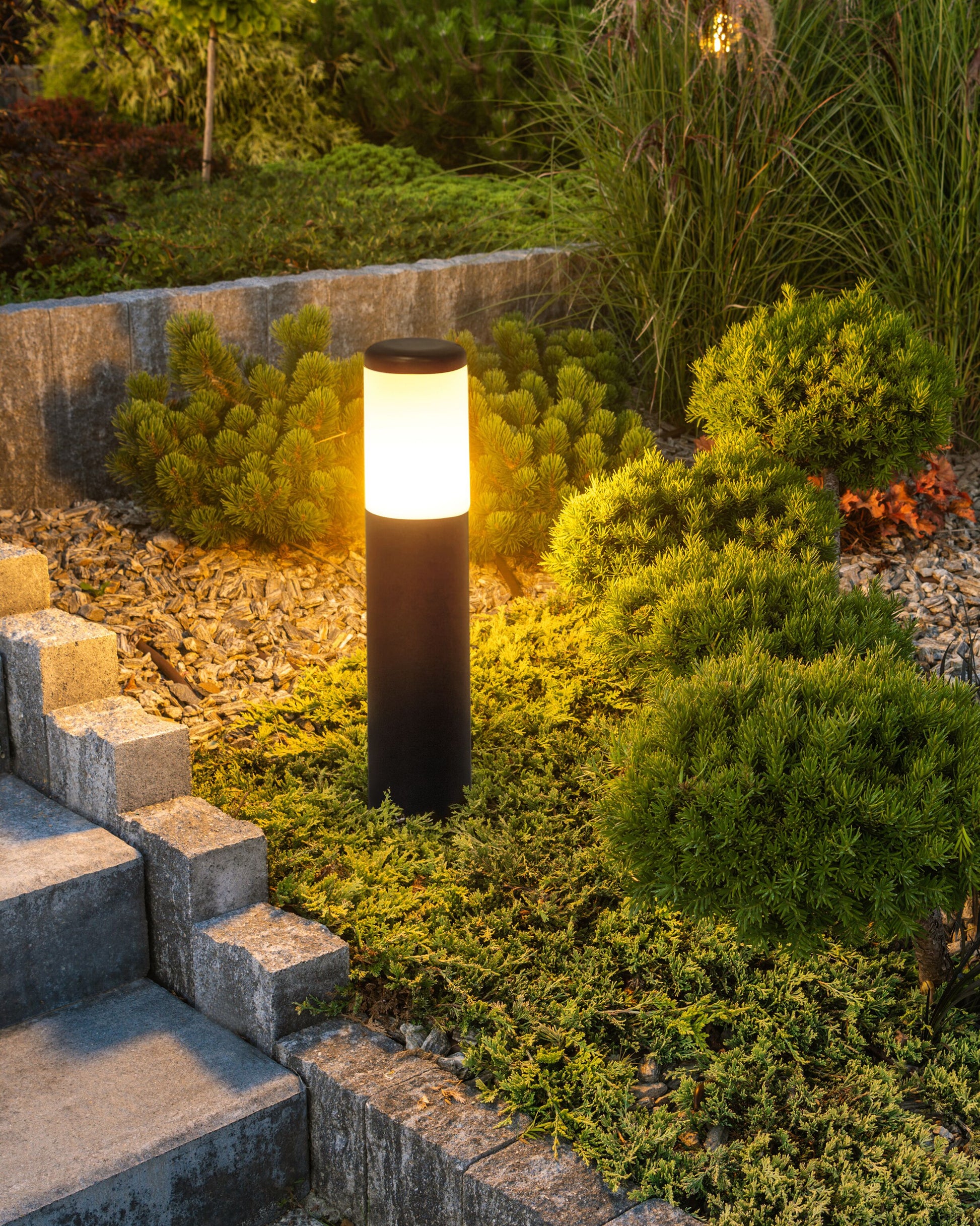 Beschreibung: Mit diesen praktischen Gartenleuchten bringen Sie etwas Licht in jeden Outdoorbereich. Durch ihr starkes, angenehmes Licht verbessern sie bei abendlichen und nächtlichen Stunden die Sichtbarkeit und verleihen Wegen, Gärten oder anderen Landschaften einen eleganten und modernen Touch. Dank ihrer robusten, schwarzen Kunststoff-Konstruktion sind diese Wegeleuchten auch ohne tägliche Pflege langlebig und widerstandsfähig. Material: Kunststoff. Gewicht: 1 Montage: Installation benötigt Das Angebot beinhaltet: 2 x Pollerleuchte, Nicht im Lieferumfang enthalten: Leuchtmittel Höhe: 49 zusätzliche Information: Die Lampe besitzt keinen eigenen Ein/Ausschalter und benötigt daher einen separaten Schalter an der Wand, Das Produkt ist auf einem festen Untergrund zu montieren. Bei Gras- oder Kiesböden muss ein Loch ausgehoben und mit Beton oder einem geeigneten Fundament gefüllt werden, um eine sichere Montage zu gewährleisten. Breite: 9 Tiefe: 16 Art: Pollerleuchte 2er Set Stil: Modern Allgemeine Farbe: Schwarz Hauptmaterial: Kunststoff Fassung: 40 W IP Protection Code: IP 54 (strahlwassergeschützt)