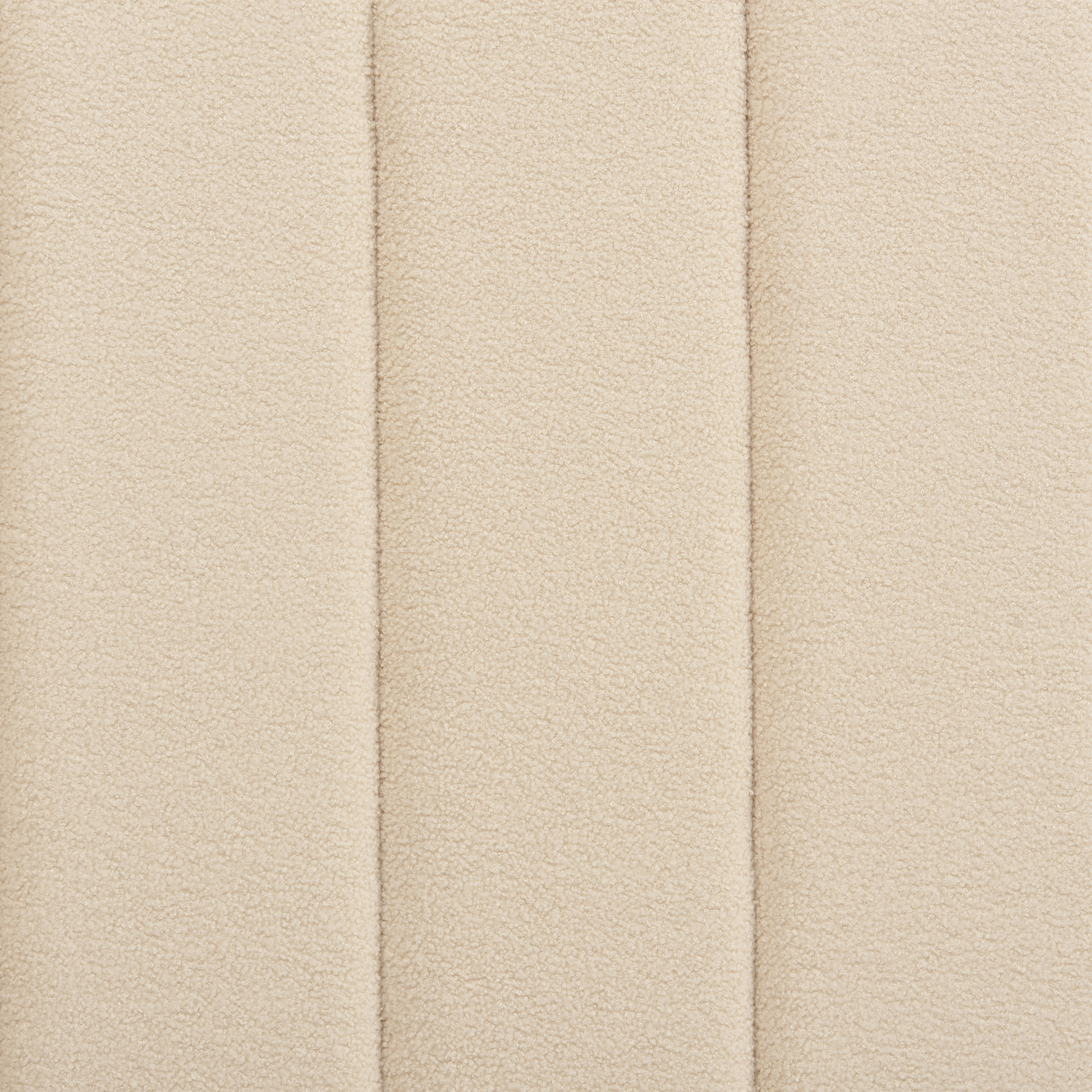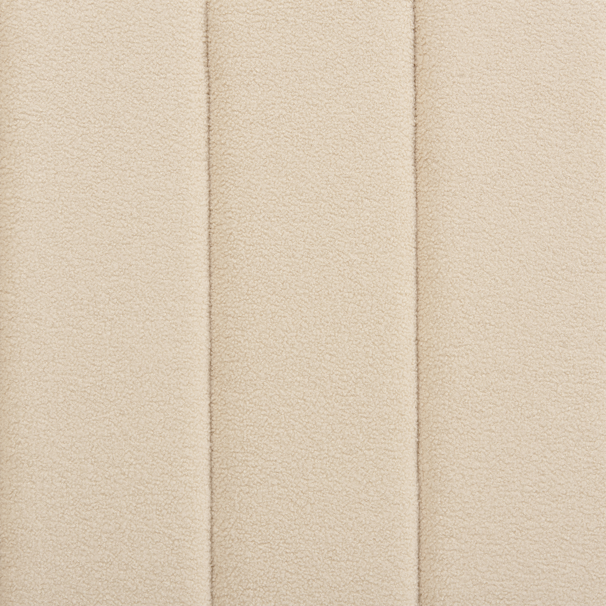 Benötigen Sie ein Bett, das gleichzeitig sehr komfortabel und wunderschön gestaltet ist? Dann ist dieses Doppelbett aus hochwertigem Bouclé-Stoff mit solidem Lattenrost für Sie. Das hohe, gesteppte Ohrensessel-Kopfteil sorgt für eine luxuröse Ausstrahlung und die stabilen, schwarzen Metallbeine unterstreichen den besonderen Charme des Stoffbettes. Dank einer Kombination aus elegantem Design und qualitativer Fertigung lädt das Ehebett zum Zurücklehnen und Entspannen ein. Material: Bouclé. Zusätzliches Material: Sperrholz, Pappelholz, Eisen, Eukalyptus. Material Zusammensetzung: 100% Polyester Gewicht: 63 Montage: Nicht montiert Holzart: Eucalyptus grandis Holzursprung: China Gewichtskapazität: 350 Beine Höhe: 15 Schlafende Oberfläche: 180x200 Das Angebot beinhaltet: 1 x Bettrahmen, 1 x Federholzlattenrost (Anzahl der Latten: 39), Nicht im Lieferumfang enthalten: Matratze, Bettwäsche und Kissen Höhe: 115 zusätzliche Information: Die auf den Fotos dargestellte Matratze ist 20 cm hoch, daher ist eine ähnlich hohe Matratze empfehlenswert. Breite: 205 Länge: 222 Art: Bett mit Lattenrost Stil: Glamourös Allgemeine Farbe: Beige Schatten: Hellbeige Hauptmaterial: Bouclé Stoff gepolstert zurück: Nein