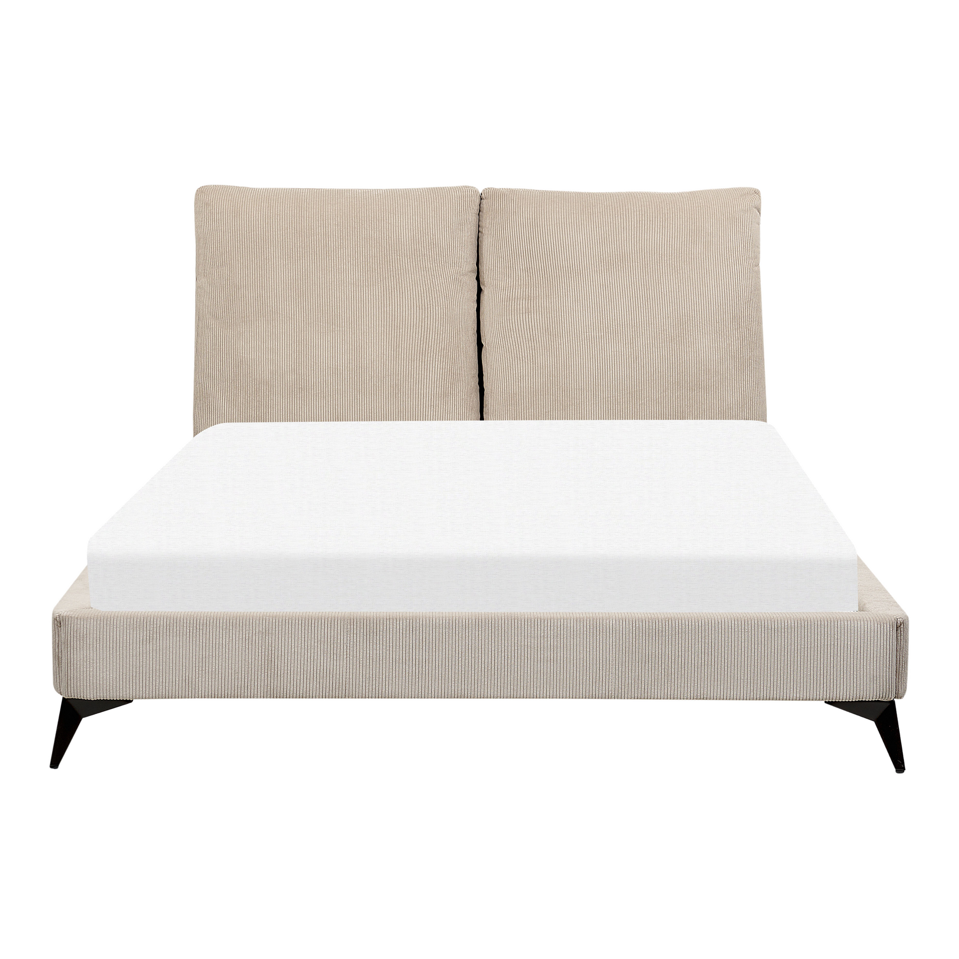 Beschreibung: Dieses stilvolle Bettgestell ist ein Must-have für alle, die Funktionalität und Ästhetik schätzen. Es besticht nicht nur mit seinem modernen Look, sondern auch mit seiner robusten Holzkonstruktion und strukturierten, weichen Oberfläche aus hochwertigem Cord. Das hohe Bett-Kopfteil ist in einer gemütlichen Kissen-Optik gehalten, so können Sie sich beim Lesen oder Fernsehabend an es anlehnen und den fabelhaften Komfort seiner dicken Polsterung auskosten. Zudem verfügt das Doppelbett über robuste Metallbeine, die für eine angemessene Einstiegshöhe und Stabilität sorgen. Material: Cord. Zusätzliches Material: Pappelholz, Sperrholz, Eukalyptus, Eisen. Material Zusammensetzung: 100% Polyester Gewicht: 41 Montage: Nicht montiert Holzart: Eucalyptus grandis Holzursprung: China Gewichtskapazität: 250 Beine Höhe: 13 Schlafende Oberfläche: 140x200 Das Angebot beinhaltet: 1 x Bettrahmen, 1 x Federholzlattenrost (Anzahl der Latten: 26), 2 x Rückenkissen, Nicht im Lieferumfang enthalten: Matratze, Bettwäsche und Kissen Höhe: 98 zusätzliche Information: Die auf den Fotos dargestellte Matratze ist 20 cm hoch, daher ist eine ähnlich hohe Matratze empfehlenswert., Bitte beachten Sie, dass Cord unter verschiedenen Lichtverhältnissen eine andere Optik haben kann – das Material schimmert bei Tageslicht stärker und wirkt bei künstlicher Beleuchtung in Innenräumen eher gedämpft. Breite: 156 Länge: 240 Art: Bett mit Lattenrost Stil: Skandinavisch Allgemeine Farbe: Beige Schatten: Taupe Hauptmaterial: Cord Stoff gepolstert zurück: Nein