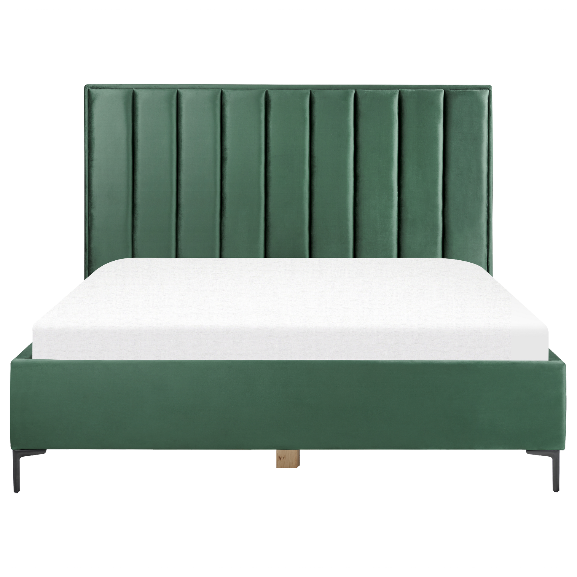 Dieses angesagte und imposante Bett wird Ihnen bestimmt wunderschöne Träume bereiten. Der weiche Samtbezug mit einer angenehmen Haptik verleiht dem Doppelbett einen charmanten und glamourösen Look, der durch die dekorativen Linienverzierungen am Kopfteil noch um einiges aufgewertet wird. Dank des stabilen Lattenrostes, der standsicheren Metallbeine und des geräumigen Stauraums ist dieses Samtbett eine exzellente Wahl für alle, die nach einem robusten und funktionalen Schlafmöbel suchen. Material: Samtstoff. Zusätzliches Material: Eisen, Kiefernholz, Pappelholz. Material Zusammensetzung: 100% Polyester Gewicht: 85 Montage: Nicht montiert Holzart: Eucalyptus grandis, Pinus massoniana, Populus Holzursprung: China Gewichtskapazität: 300 Beine Höhe: 16 Schlafende Oberfläche: 180x200 Das Angebot beinhaltet: 1 x Federholzlattenrost (Anzahl der Latten: 24), 1 x Bettrahmen mit Stauraum, Nicht im Lieferumfang enthalten: Matratze, Bettwäsche und Kissen Höhe: 142 zusätzliche Information: Die auf den Fotos dargestellte Matratze ist 20 cm hoch, daher ist eine ähnlich hohe Matratze empfehlenswert., Bitte beachten Sie, dass Samtstoff unter verschiedenen Lichtverhältnissen eine andere Optik haben kann – das Material schimmert bei Tageslicht stärker und wirkt bei künstlicher Beleuchtung in Innenräumen eher gedämpft. Aufgrund der glatten, hochdichten Struktur des Gewebes kann sein Farbton auch variieren, wenn man mit der Hand in verschiedene Richtungen und Winkel über den Stoff fährt. Um den Farbton auszugleichen und Druckstellen zu vermeiden, sollte der Webstoff sanft mit einer offenen Handfläche in eine Richtung gestrichen, mit einem feuchten Tuch abgewischt oder einem Dampfbügeleisen gebügelt werden. Breite: 190 Länge: 215 Art: Bett mit Stauraum Stil: Glamourös Allgemeine Farbe: Grün Schatten: Dunkelgrün Hauptmaterial: Samtstoff Stoff gepolstert zurück: Nein