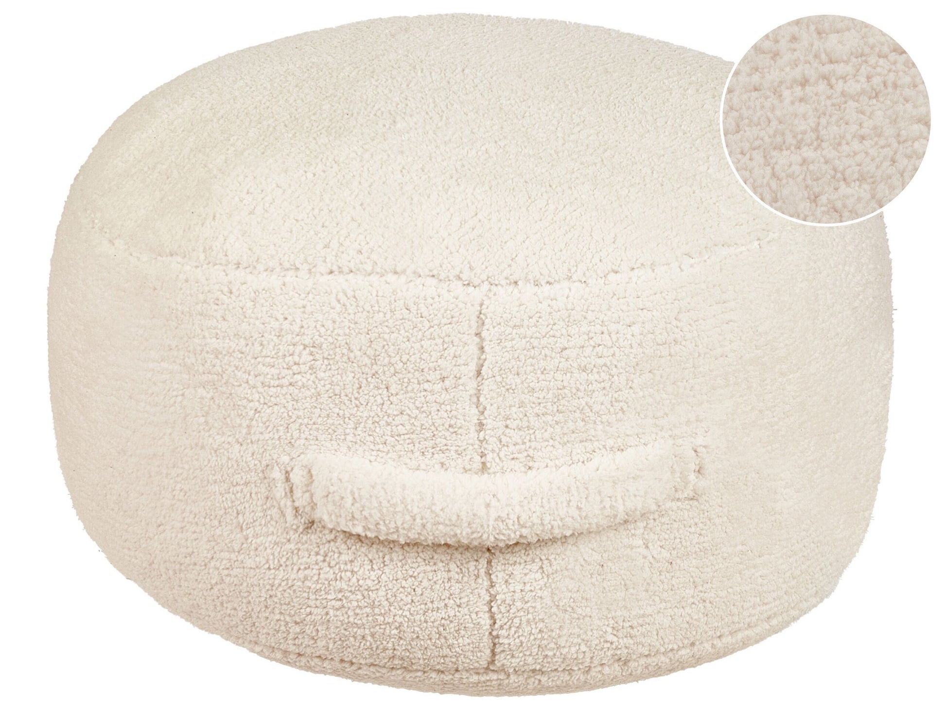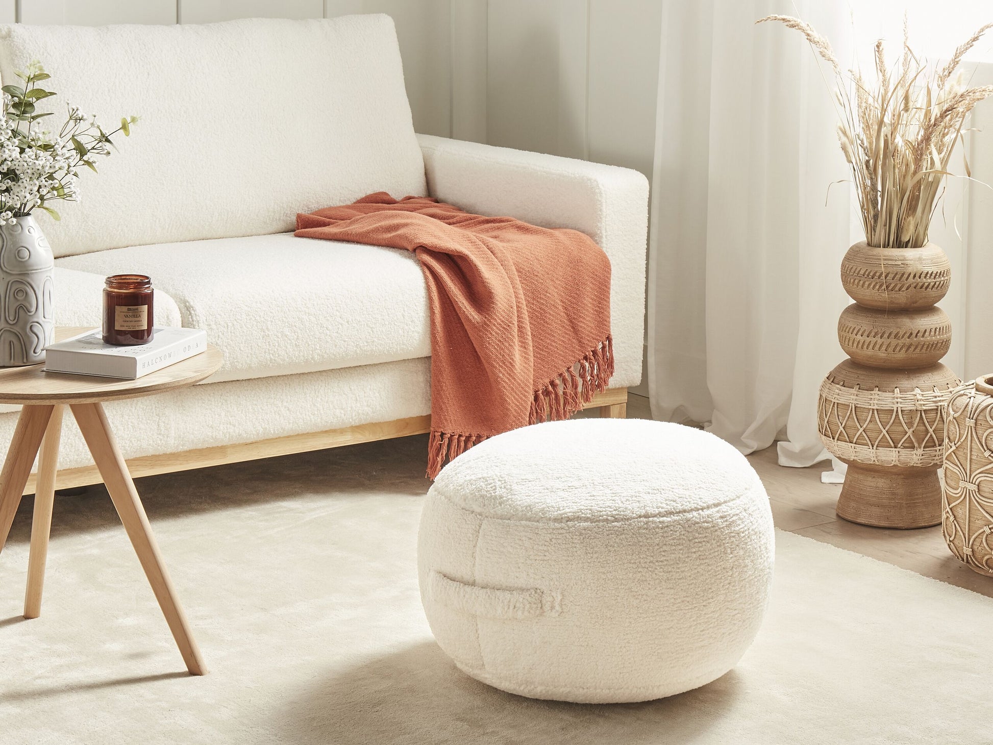 Dieser vielseitige runde Pouf mit kuschelig weichem Polyesterbezug verleiht jedem Zimmer einen Hauch von Gemütlichkeit. Ob als bequeme Sitzgelegenheit oder als stilvoller Akzent, sein neutraler Farbton fügt sich mühelos in jede Einrichtung ein. Leicht und mit seinem Griff einfach zu transportieren, ist er ideal, um eine entspannte Atmosphäre zu schaffen. Material: Bouclé. Material Zusammensetzung: 100% Polyester Gewicht: 1 Montage: Benötigt keine Montage Gewichtskapazität: 150 Das Angebot beinhaltet: 1 x Pouf Höhe: 30 Gestalten: Rund Breite: 50 Tiefe: 50 Art: Pouf Stil: Modern Allgemeine Farbe: Beige Schatten: Hellbeige Muster: Ohne Muster Hauptmaterial: Bouclé Füllmaterial: Kugeln aus Polystyrol (EPS)