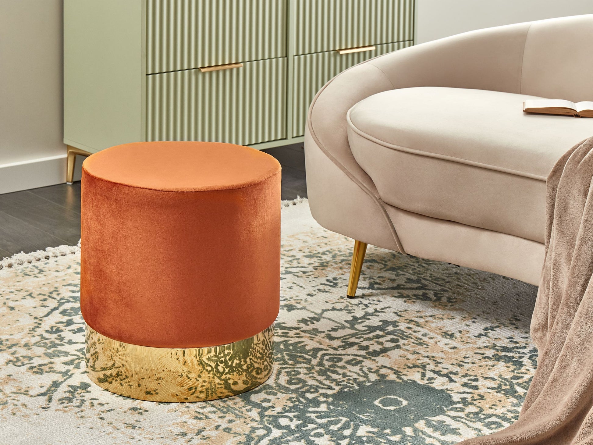 Pouf Samtstoff orange / gold ⌀ 39 cm SOPHIA