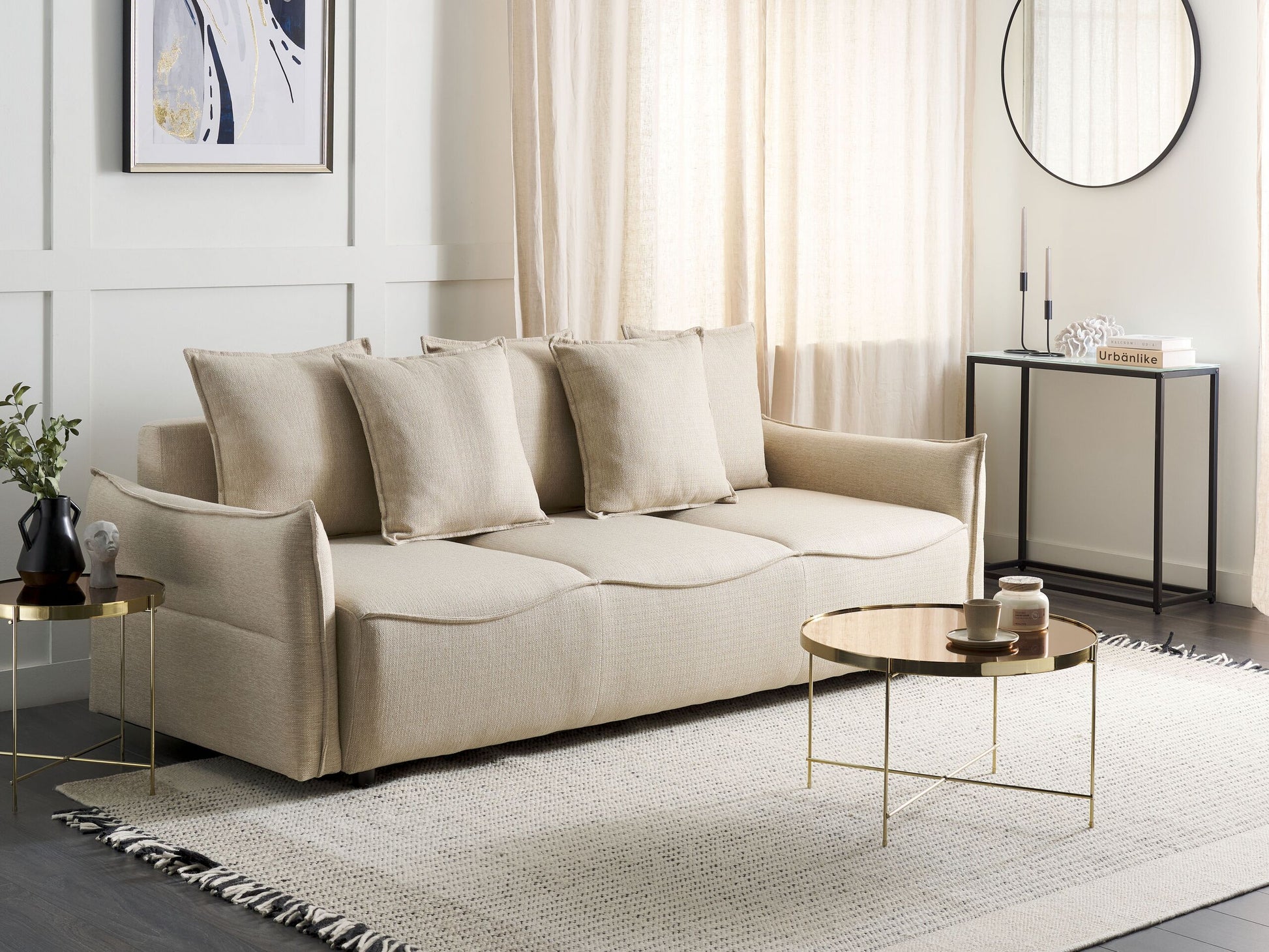 3-Sitzer Schlafsofa beige mit Stauraum KRAMA
