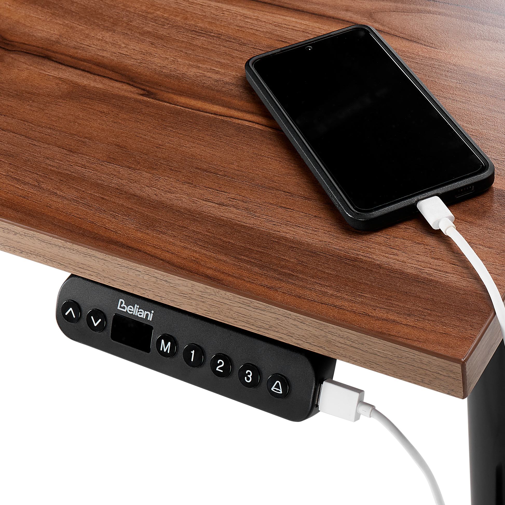 Passen Sie Ihren eigenen Arbeitsplatz ganz nach Ihren individuellen Bedürfnissen an. Dank des leistungsstarken Elektroantriebs verwandeln Sie diesen Bürotisch in nur wenigen Sekunden in einen praktischen Stehtisch. Die robuste, rechteckige Tischplatte verfügt über eine strapazierfähige, nahezu kratzfeste Melaminbeschichtung, während die breiten Standfüsse des runden Stahlgestells höchste Stabilität bieten und Ihnen genügend Beinfreiheit beim Sitzen liefern. Mit einem leicht bedienbaren LED-Touchpad, USB-Anschluss, einer laufruhigen Motorik, einer praktischen Memory- und Alarm-Funktion sowie einer optimalen Kabellänge wird für jeglichen Nutzkomfort gesorgt. Material: Faserplatte. Zusätzliches Material: Stahl. Gewicht: 47 Montage: Nicht montiert Gewichtskapazität: 120 Beine Höhe: 64-129 Das Angebot beinhaltet: 1 x Schreibtisch Höhe: 67-132 zusätzliche Information: Um die Haltbarkeit und die Ästhetik der Arbeitsplatte zu erhalten, sollte man Platzsets und Untersetzer verwenden und feuchte Stellen schnellstmöglich trocken wischen, um Produktschäden zu vermeiden. Gestalten: Rechteckig Breite: 160 Tiefe: 72 Art: Verstellbarer Schreibtisch Stil: Modern Allgemeine Farbe: Dunkler Holzfarbton Hauptmaterial: Faserplatte