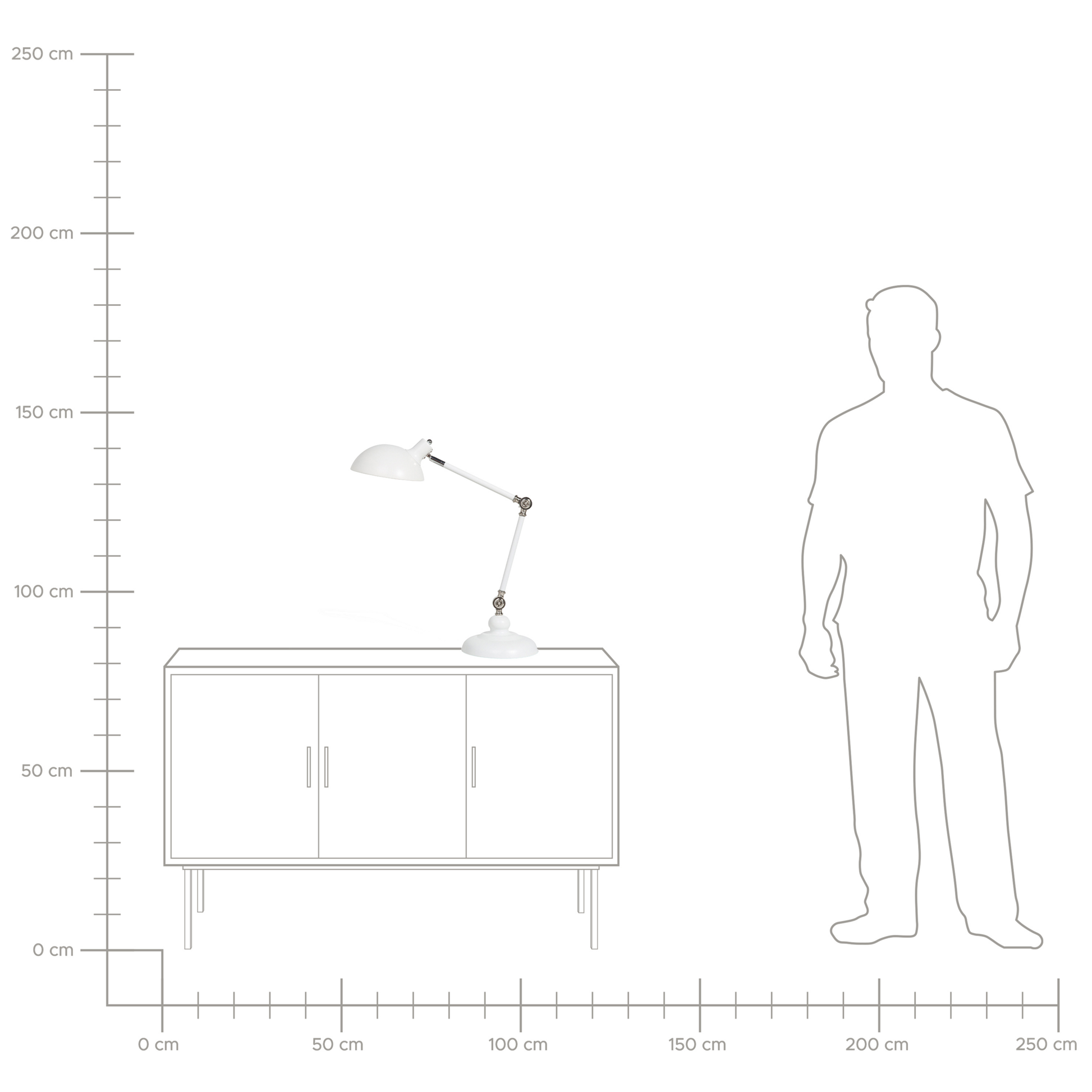 Beschreibung: Ob als praktische Tisch- oder Schreibtischlampe, als Dekoleuchte, als dekorative Leseleuchte in einer gemütlichen Ecke, als elegante Büroleuchte oder als moderne Nachttischlampe - die wunderschöne Tischleuchte in mattem Weiss wird Sie begeistern. Der Lampenarm hat drei Gelenke und ist somit sehr flexibel einstellbar für Ihre Bedürfnisse. Der Lampenschirm spendet angenehmes Licht. Im Lieferumfang ist ein Kabel mit Schalter beinhaltet. Material: Metall. Gewicht: 2.5 Montage: Teilweise montiert Das Angebot beinhaltet: 1 x Tischleuchte, Nicht im Lieferumfang enthalten: Leuchtmittel Höhe: 80 zusätzliche Information: Diese Leuchte ist geeignet für Leuchtmittel der Energieklassen A bis G auf einer Skala von A (sehr effizient) bis G (weniger effizient). Geeignet für: LED Leuchtmittel, Eco-Halogen Leuchtmittel, Energiesparleuchtmittel., Die Stromkabel dürfen nur von einem qualifizierten Elektriker angepasst werden. Breite: 19 Tiefe: 19 Art: Schreibtischlampe Stil: Industriell Allgemeine Farbe: Weiss Hauptmaterial: Metall Fassung: Max. 40 W IP Protection Code: IP 20