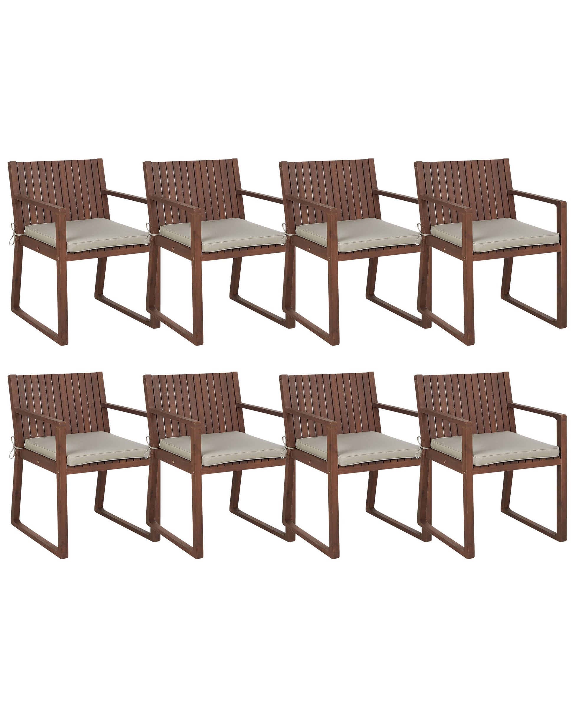 Set mit 8 Stühlen und Sitzkissen Holz Taupe SASSARI