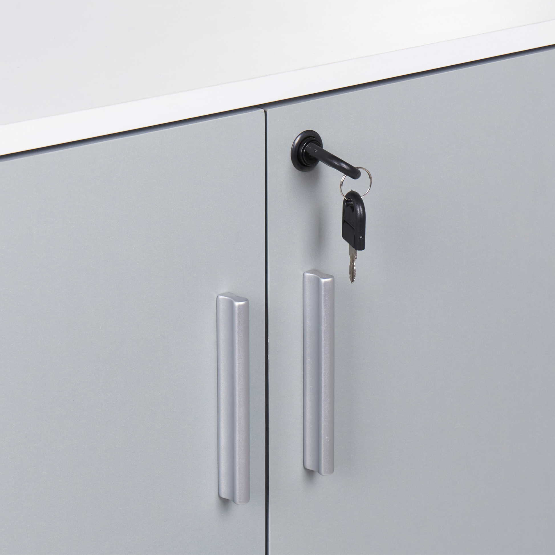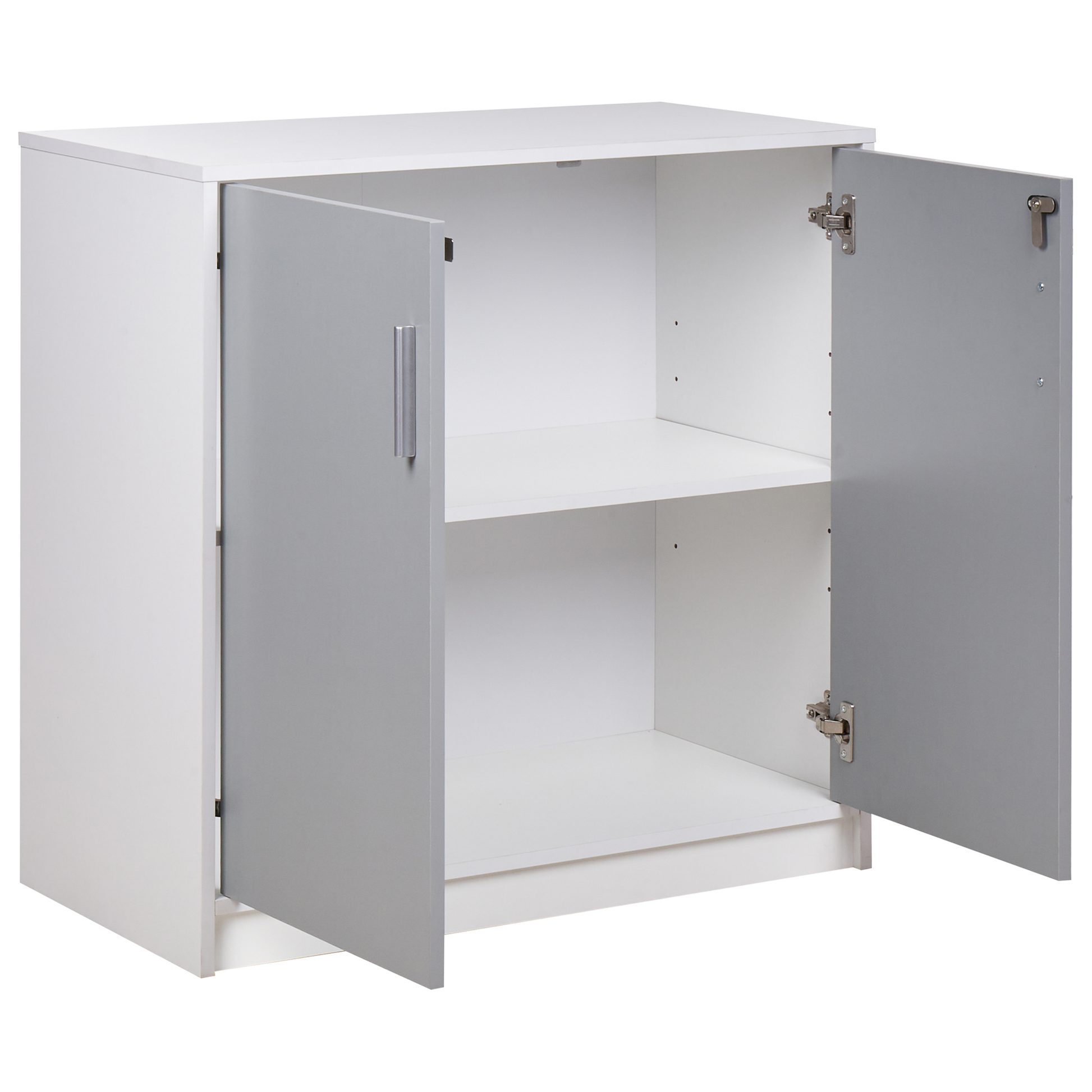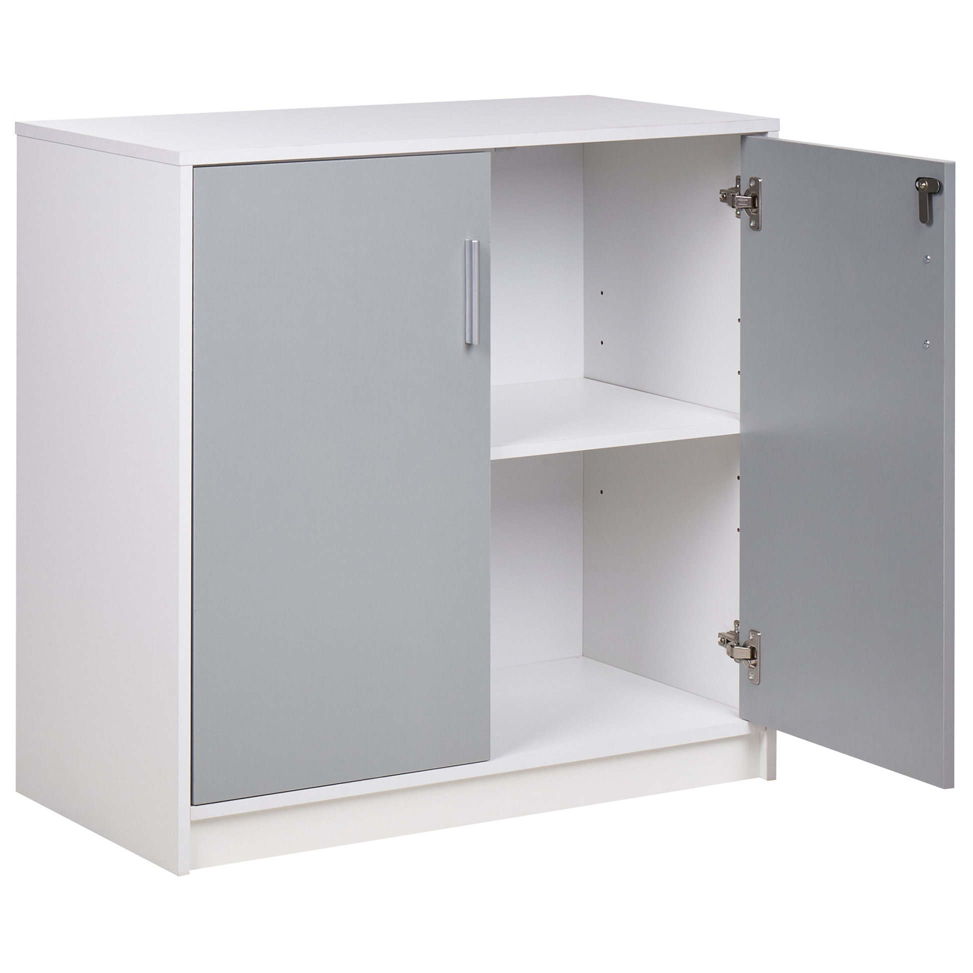Mit diesem Büroschrank öffnen Sie das Tor zu organisierter Brillanz. Das Sideboard verfügt über ein zweitüriges, abschliessbares Staufach mit zwei Einlegeböden, in dem alle Ihre Dokumente sicher und geordnet untergebracht werden können. Werten Sie Ihren Arbeitsbereich auf - dort, wo das Chaos seinen Platz findet und die Innovation gedeiht. Material: Faserplatte. Zusätzliches Material: Metall. Gewicht: 22 Montage: Nicht montiert Das Angebot beinhaltet: 1 x Büroschrank Höhe: 80 Breite: 80 Tiefe: 40 Art: Büroschrank Stil: Industriell Allgemeine Farbe: Grau Schatten: Hellgrau Hauptmaterial: Faserplatte