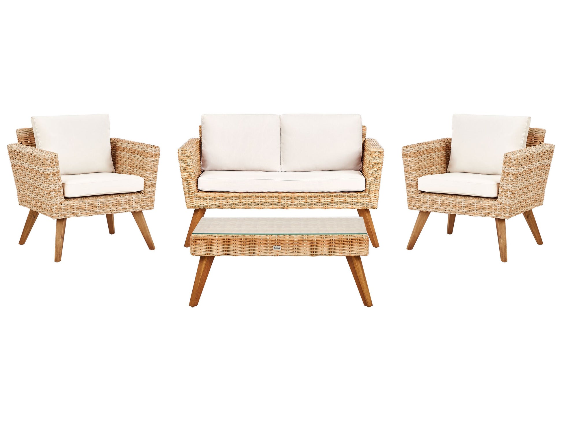 Lounge Set mit Tisch 4-Sitzer VITTORIA Polyrattan Cremeweiss
