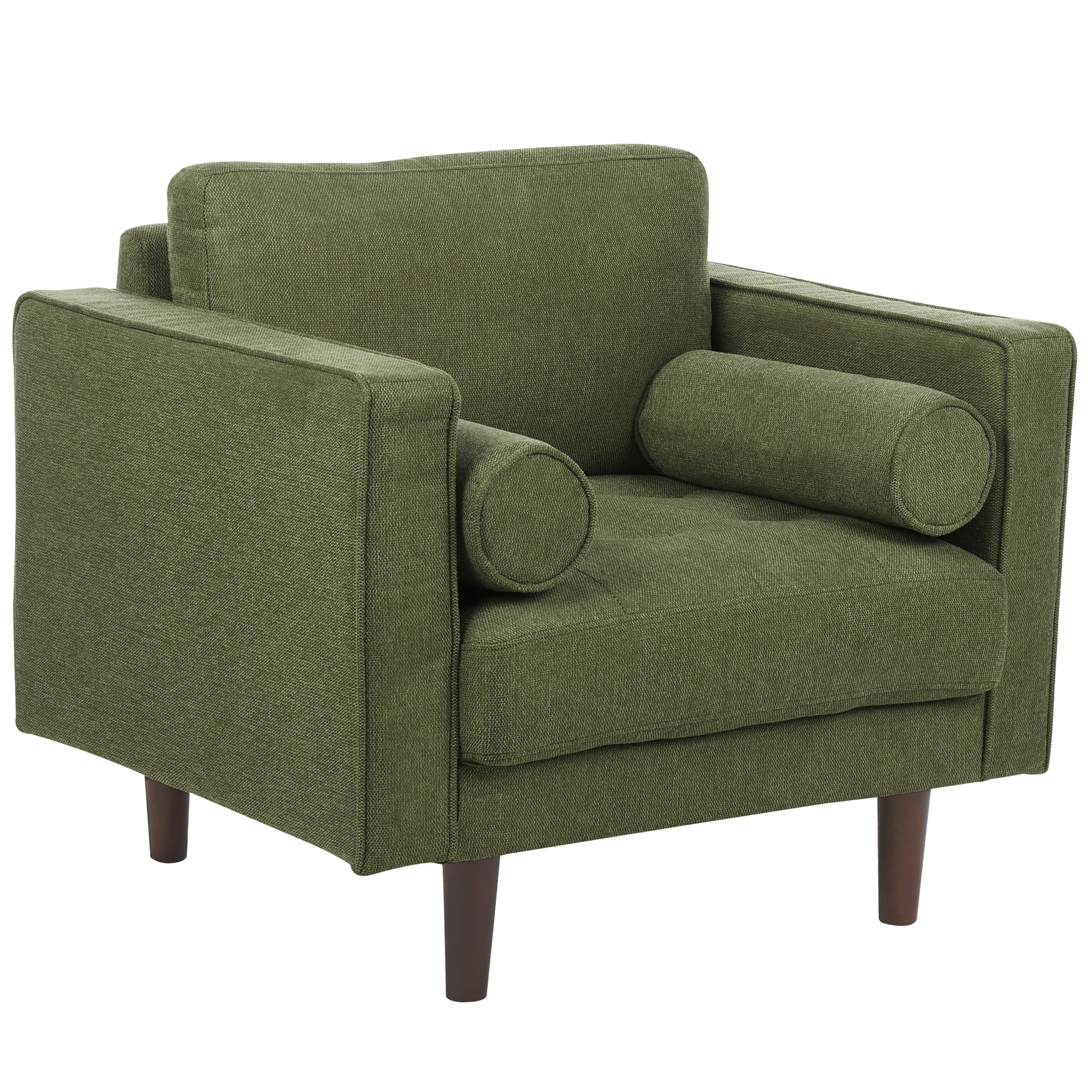 Beschreibung: Dieses 3-Sitzer Sofa und Sessel lassen mit ihren zeitlosen Retro-Designs besondere Gemütlichkeit in Ihrem Wohnzimmer aufkommen. Mit ihren strapazierfähigen Stoffbezügen und ihren schmalen Beinen aus Gummibaumholz strahlen sie nicht nur Stil aus, sondern versprechen auch Langlebigkeit und Robustheit. Die dicken Sitz- und Rückenkissen sind mit praktischen Klettverschlüssen für einen sicheren Halt ausgestattet. Die weichen Sitzpolster und hohen Armlehnen sorgen für einen optimalen Sitzkomfort, während die zusätzlichen Nackenrollen das Sitzerlebnis noch um einiges erhöhen. Zudem verfügen die Kissen über abnehmbare Hüllen, die Ihnen die Instandhaltung des Wohnzimmersets erleichtern. Material: Polyester. Zusätzliches Material: Eukalyptus, Gummibaumholz, Sperrholz. Material Zusammensetzung: 100% Polyester Gewicht: 57 Kapazität: 4 Personen Montage: Beine / Füsse nicht montiert Holzart: Eucalypteae Holzursprung: China Gesamtabmessungen: 174x77x78 Kissen Abmessungen: 47x14 Beine Höhe: 16 Polsterstärke: 19 3 Sitzer Sofa Abmessungen: 177x74x78 Sitzhöhe: 45 Sessel Abmessungen: 86x74x78 Das Angebot beinhaltet: 1 x Sessel, 1 x Dreisitzer, 4 x Zierkissen Art: Wohnzimmer Set Stil: Retro Allgemeine Farbe: Grün Schatten: Dunkelgrün Hauptmaterial: Polyester Füllmaterial: Schaumstoff Arm Stil: Gerade
